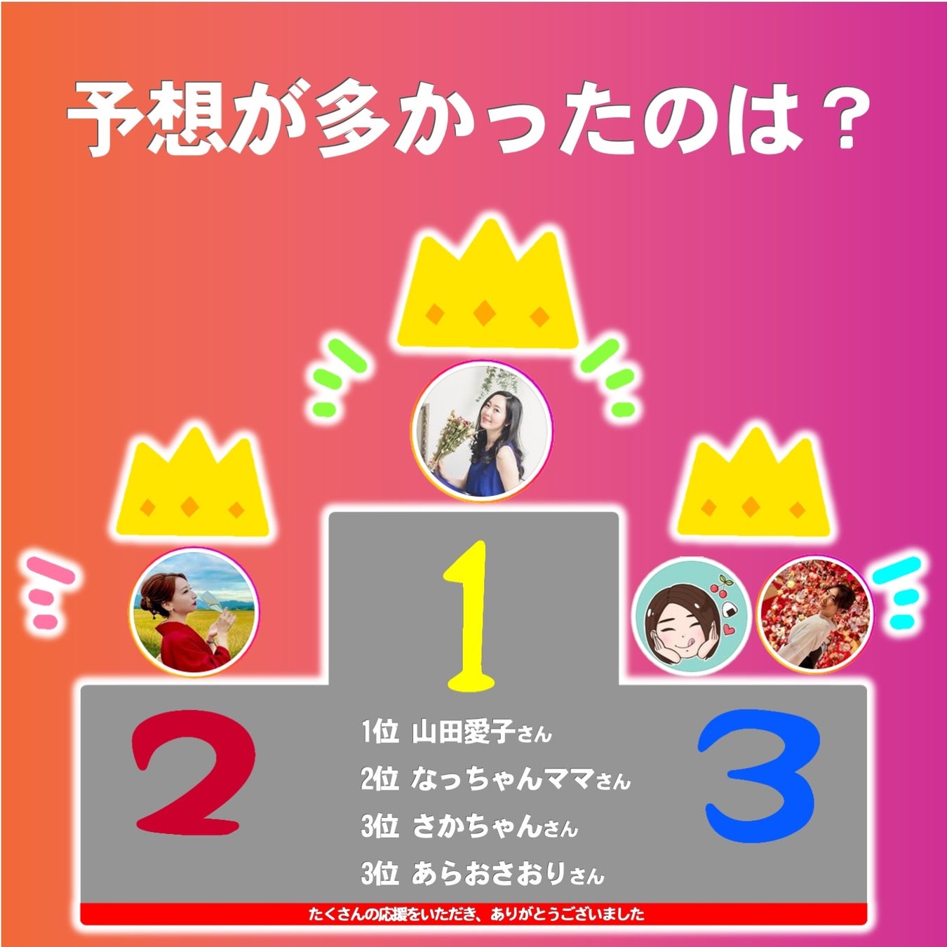 【予想賞】 山田愛子さん … 一般ユーザーからの事前予想1位。