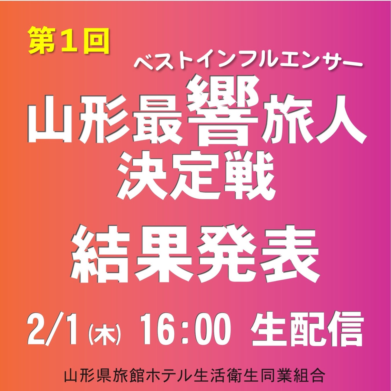 山形県旅館ホテル生活衛生同業組合では、旅行や宿泊に影響力のあるインフルエンサーを決める「山形ベストインフルエンサー決定戦」を開催。山形の13宿泊施設と13名のインフルエンサーがタッグを組み、協力してPRを行い、集客や広告の効果を競った。最も集客した「山形ベストインフルエンサー」は、南陽市の「なっちゃんママ」に決定し、記念のトロフィーが贈られた。他にも様々な賞が与えられ、発表会の様子は、Youtubeで生配信された。