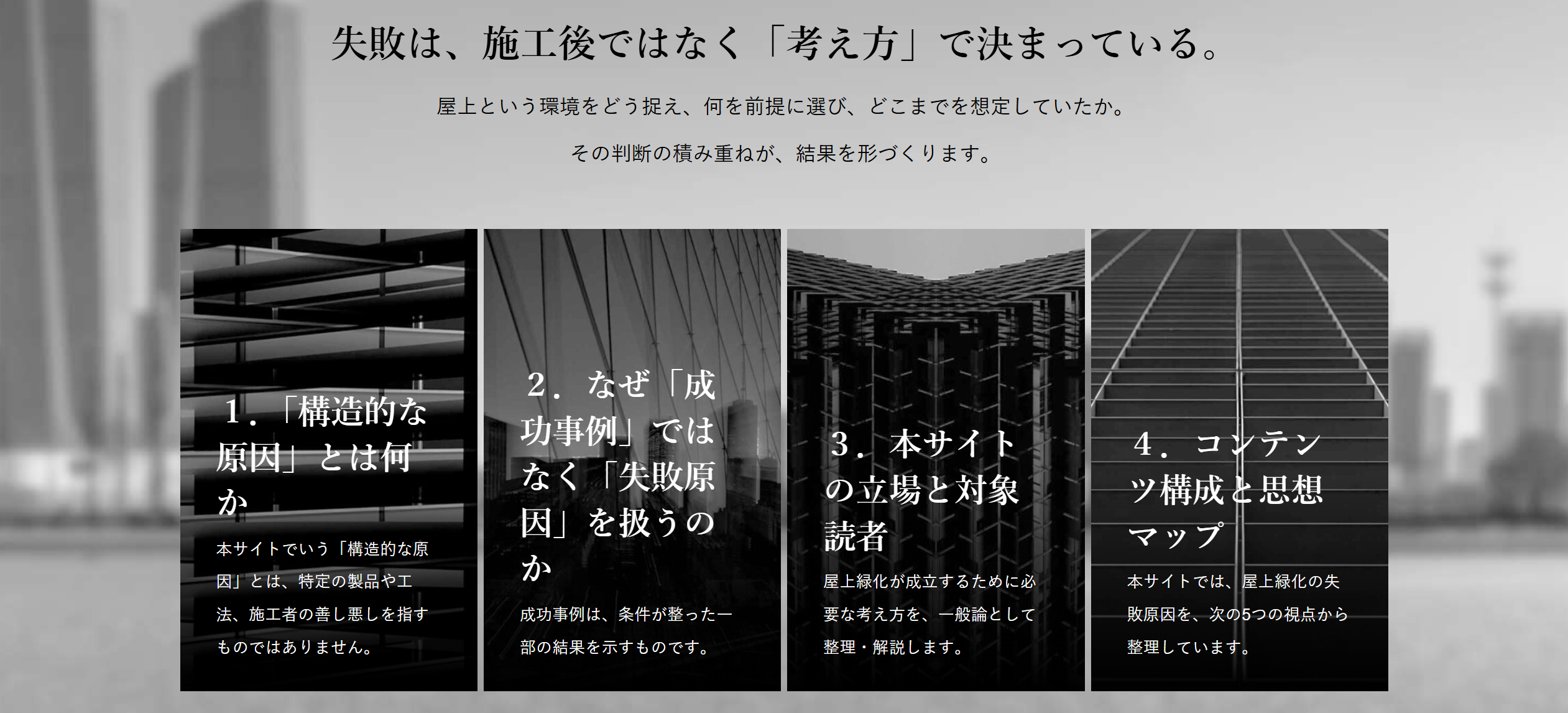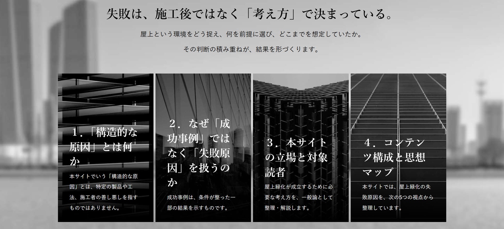 本サイトでは、屋上緑化の検討において見落とされがちな前提を、