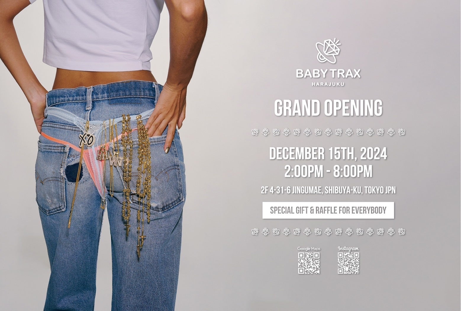著名人御用達のTRAX TOKYOが、新しいジュエリーライン【BABY TRAX】を展開。2024年12月15日(日)14時より、BABY TRAX原宿店がグランドオープンいたします。