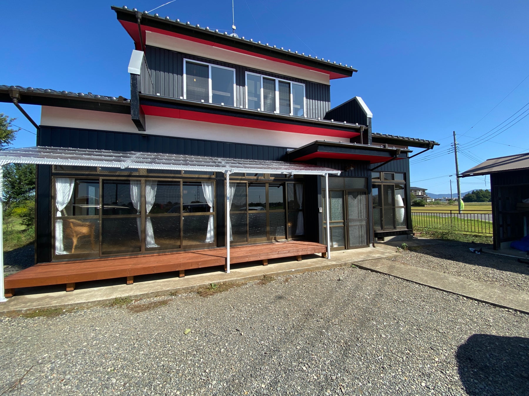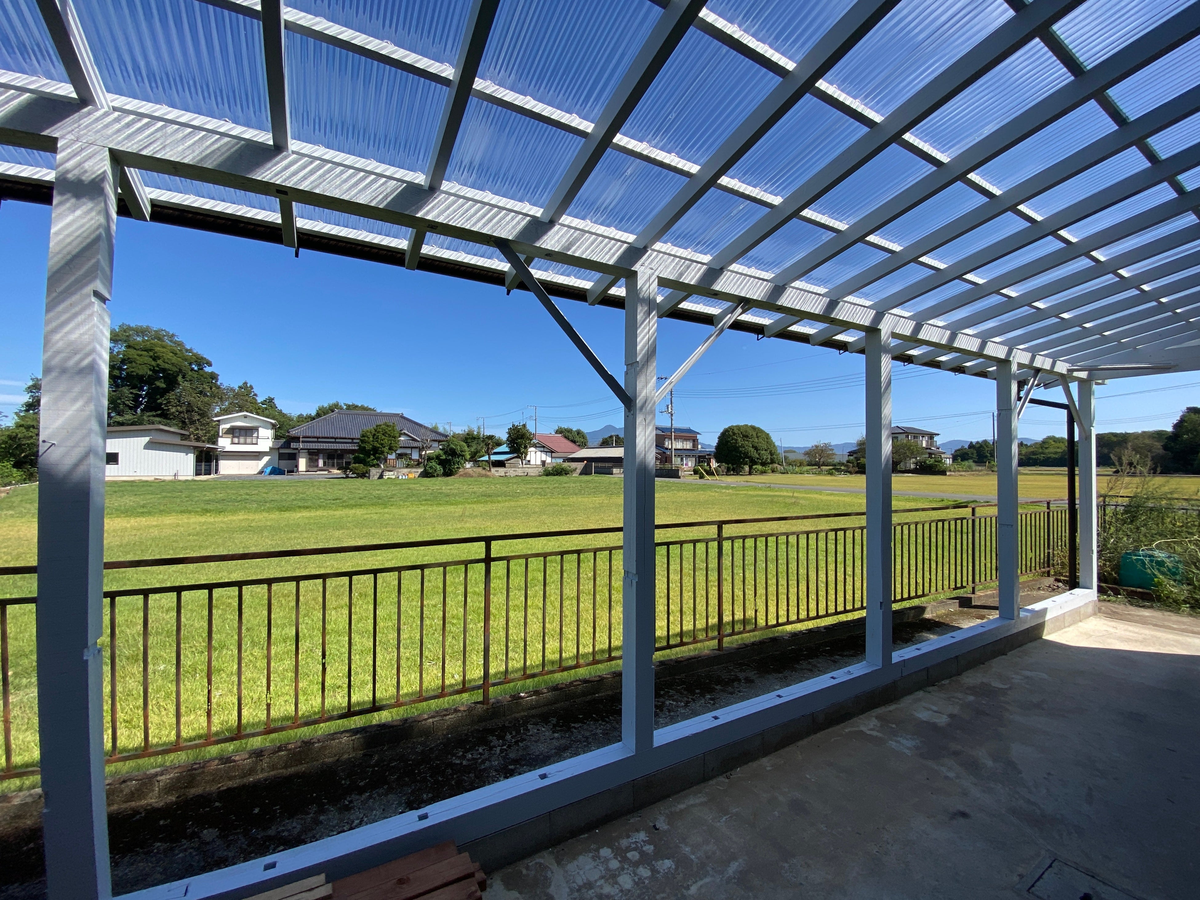 また、増築された北側スペースは外壁を取り除き透明なポリカ屋根を付け、広々としたテラスへと変身しました。