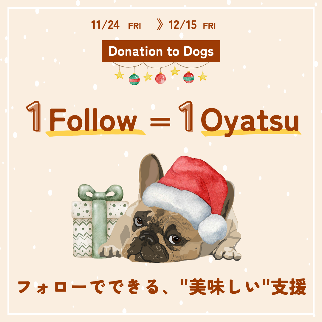 OIDE公式インスタグラムアカウントのフォローあたり1グラム分の「エイジングケアおやつ「OIDE」」を、公益社団法人アニマル・ドネーションを通じて全国の動物福祉活動団体にプレゼントする「1フォロー&1おやつ+10円プロジェクト」を11月24日(金)から12月15日(金)まで開催します。
