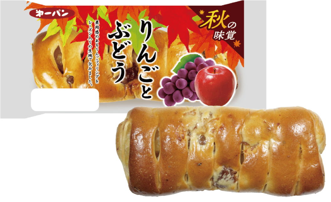 それぞれさつまいもや栗、りんご、ぶどうといった秋に食べたくなる旬の食材を使用し、存分に「秋の味覚」を味わえるパンに仕上げました。パッケージデザインには秋らしい温かみと深みのある色合いを使い、秋の到来を感じられるようなデザインとなっています。