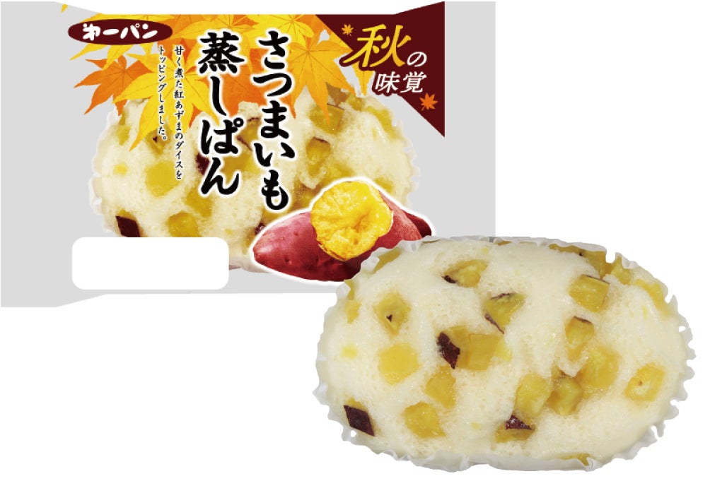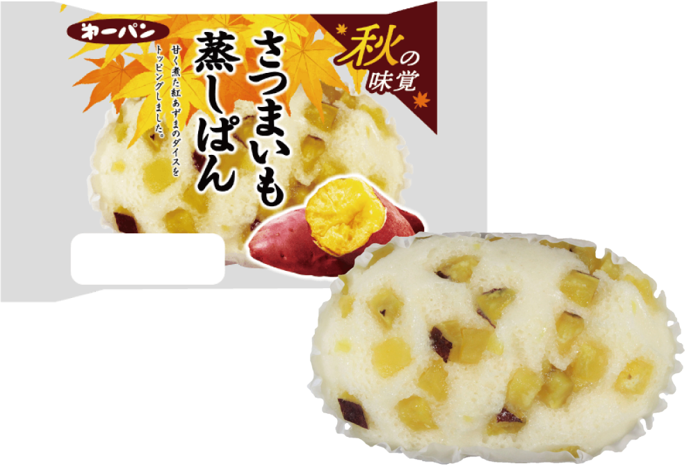 おいものおいしさとほくほく感を楽しめるよう、蒸し生地はシンプルにして、甘いさつまいもダイスをごろごろっとトッピングしました。見た目にもさつまいも感の感じられる1品です。