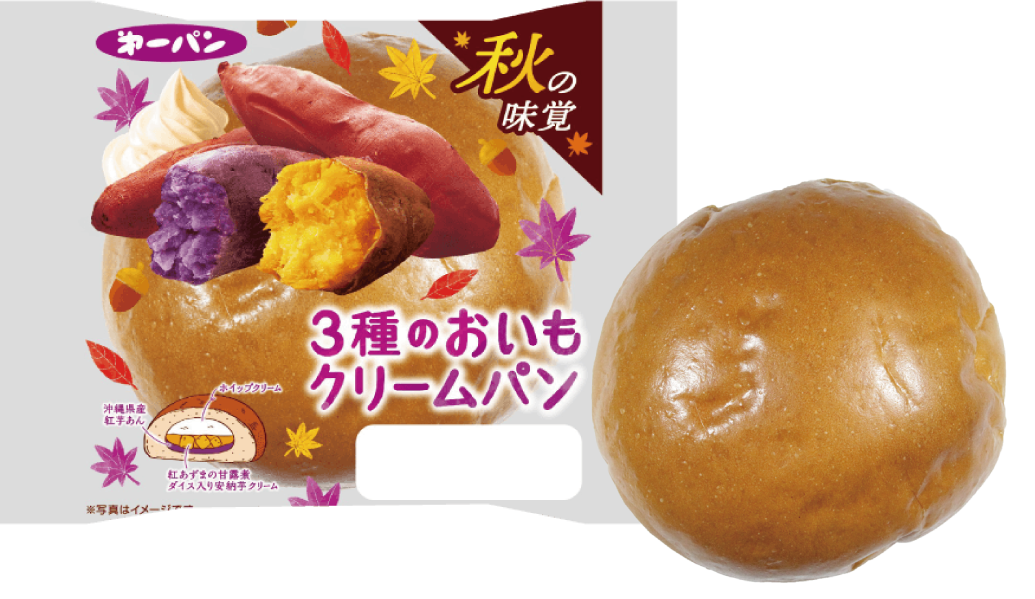 おいものおいしさを存分に楽しめるよう、3種類の芋を使用したおいも餡やおいもクリームを一つのパンに包み込みました。おいもの色々な味と食感が楽しめます。