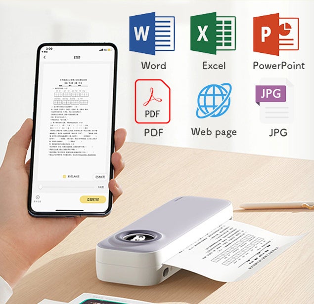 「Word, Excel, Power Point, PDF, Web page, JPG」など数多くのファイルで印刷可能です。