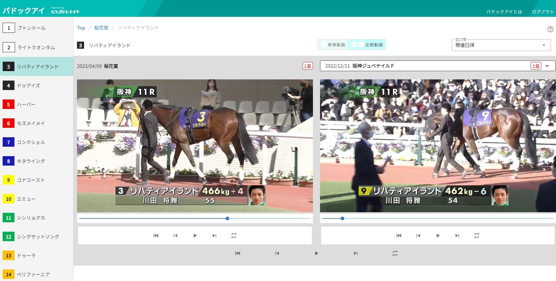 これにより、馬毎にパドック動画を何度も見る事ができ、さらに過去の動画と並べて比較再生することで馬の状態チェックをより深く楽しめるようになりました。