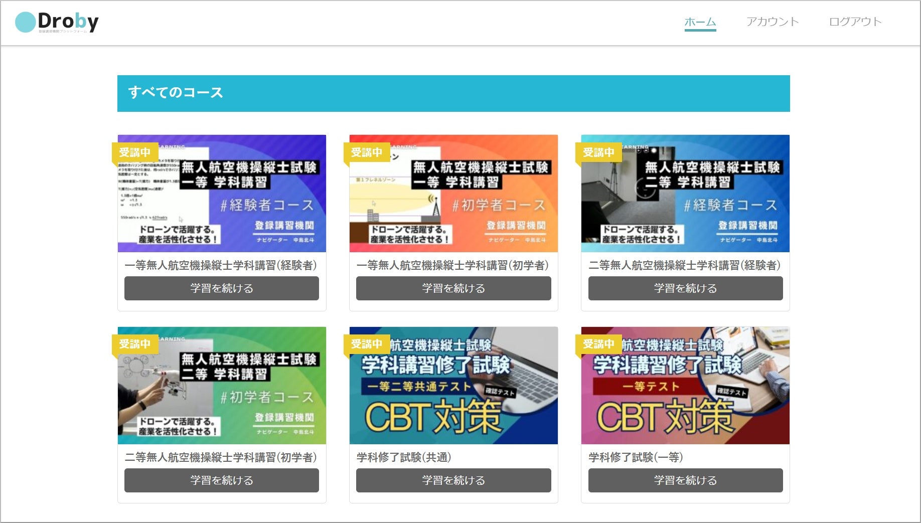 リーガライト行政書士法人が提供するDroby(ドロビー)は一等無人航空機操縦士試験(初学者・経験者)、二等無人航空機操縦士試験(初学者・経験者)のすべての講習に対応しています。