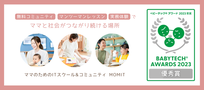 今回、国内で流通するベビーテック商品やサービス・育児家電を表彰する「BabyTech® Awards 2023」にて、ママ向けオンラインITスクール「MOMIT(マミット)」が 「キャリア支援部門 優秀賞」を受賞いたしました。