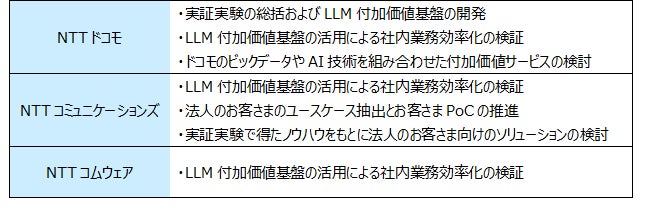 NTTドコモグループ3社は、各社が保有する技術やノウハウを活用することで、多くのお客さまがLLMをはじめとするAI技術の恩恵を受けられる環境を構築し、人々の生活がより便利で豊かになるよう取り組んでまいります。