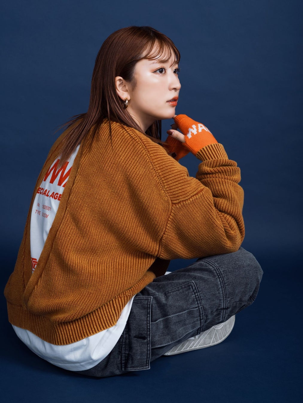 (ニット¥12,500 ユニセックスロンT ¥9,900 アームウォーマー¥4,500)