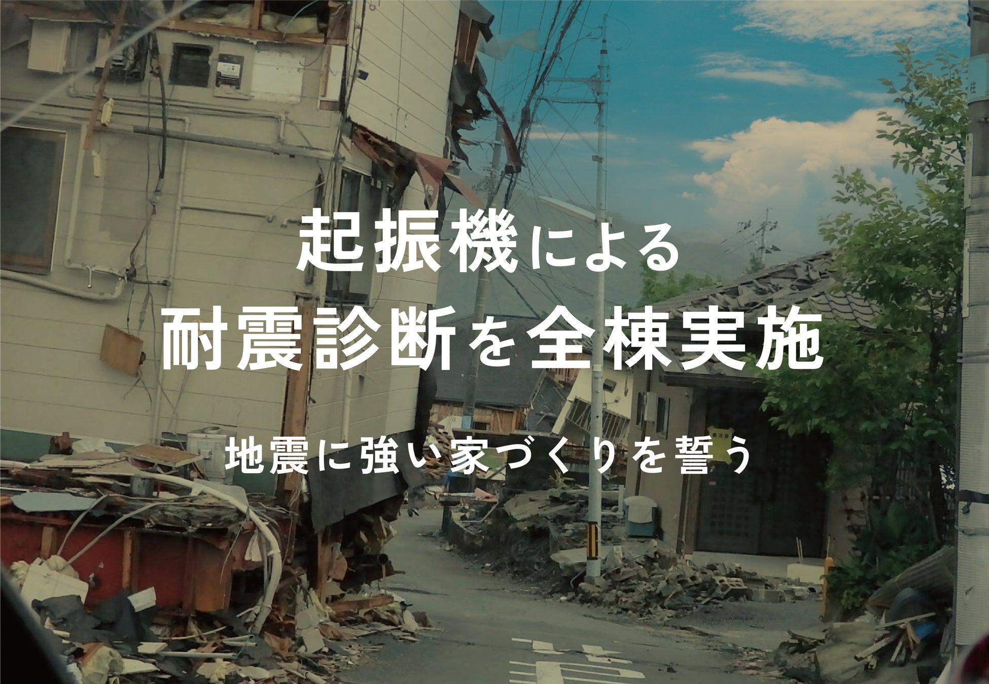 起振機による耐震診断を全棟実施。地震に強い家づくりを誓う