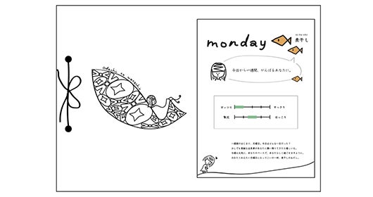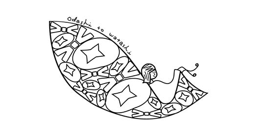 「おだしとわたし」のプロジェクトロゴです。四大だし(かつお節、昆布、煮干し、椎茸)とわたしが寄り添うデザインにしています。