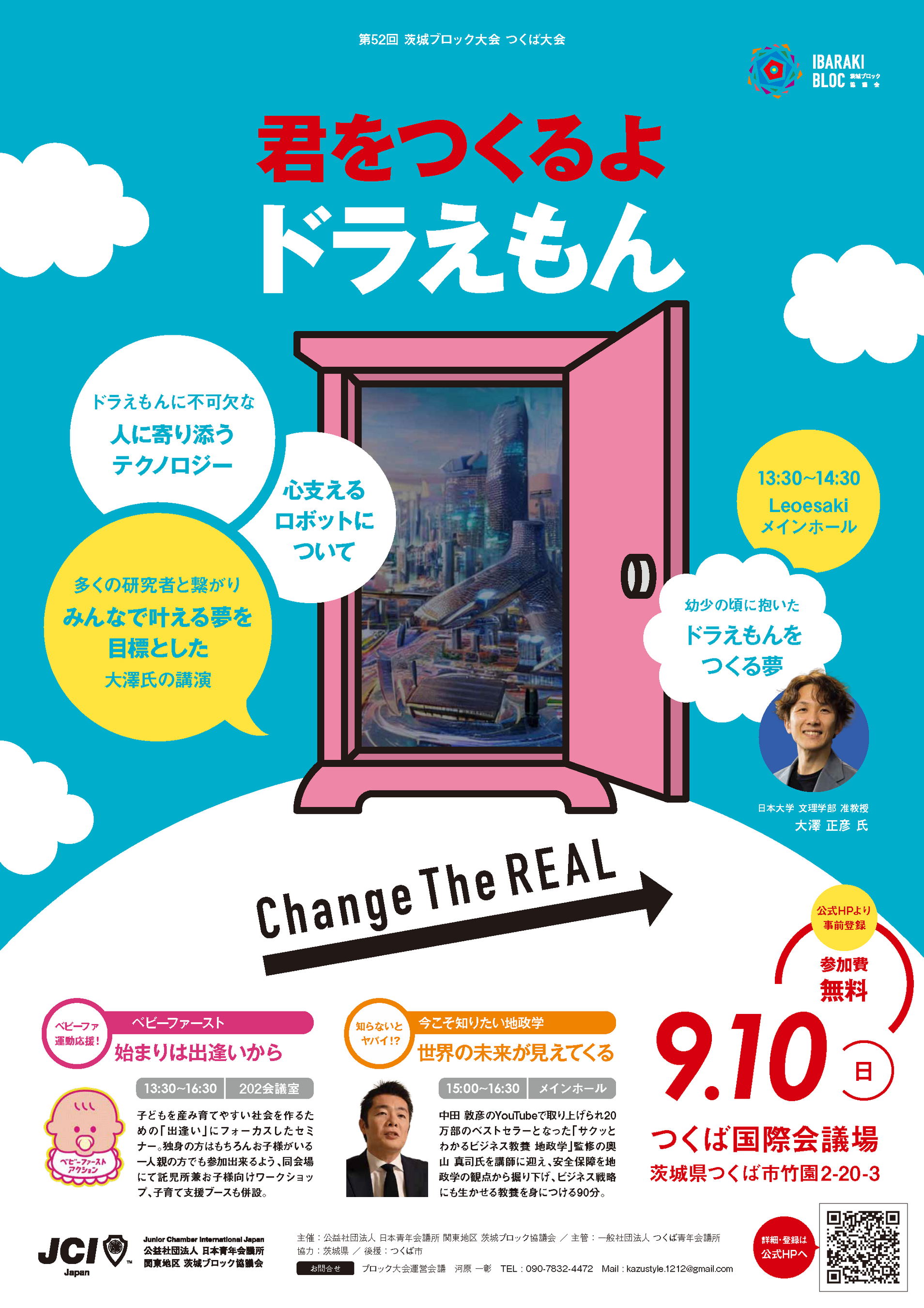 公益社団法人日本青年会議所関東地区 茨城ブロック協議会主催で開催される「第52回茨城ブロック大会つくば大 会~Change the REAL」 にて、ブースを準備いたします。