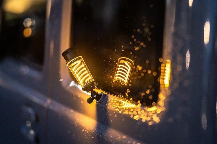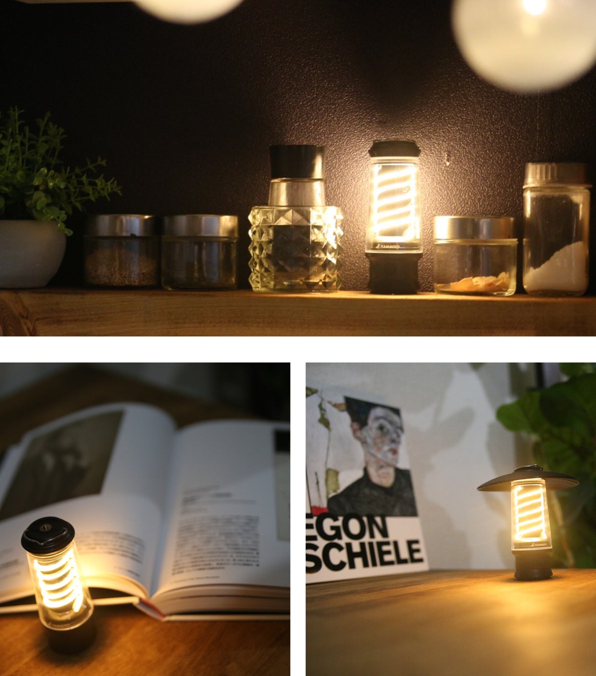 コクレアランタンは、全長90mmのミニマルながらも360°全体を照らすランタンモードと、懐中電灯のように先端部で照らすハンディライトモードの2つの機能を兼ね備えた高機能なヴィンテージ風LEDライトです。また、先端が点滅する機能も付けましたので緊急時や防災目的としても活用ができます。