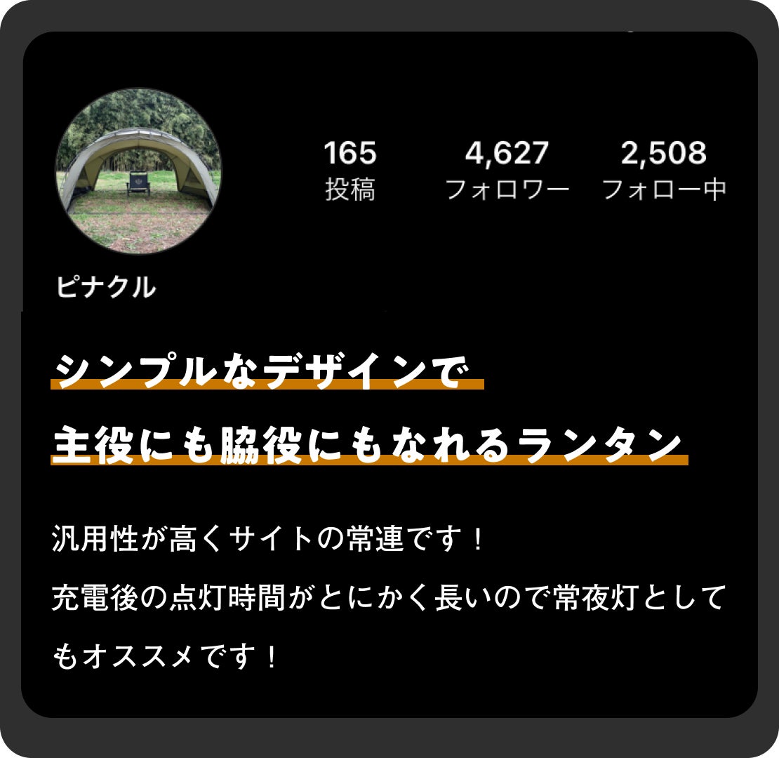 ○キャンプ系インフルエンサー様からも絶賛の声!