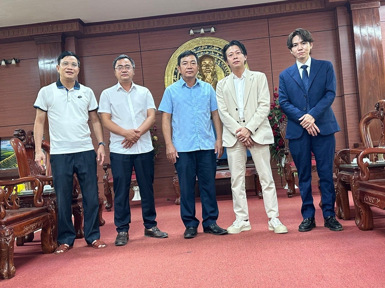 ベトナムのソンドン県知事であるホアン・ヴァン・チョン氏(左から3番目)および株式会社日本TOYOのグエン・ホアン・トウ執行役員取締役(左から4番目)
