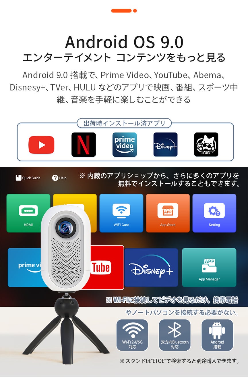 その次に、ETOE D1 EVOプロジェクターは家庭娯楽における不可欠な一部でもあります。学習に使用するだけでなく、家庭に映画館のような映画鑑賞体験をもたらすこともできます。親たちは子供たちと一緒に素晴らしい映画やアニメを楽しんだり、ゲームをプレイしたりすることで親子関係を深めることができます。内蔵のAndroid TVシステムには、Netflix、Prime Video、YouTubeなどのアプリが工場出荷時に搭載されています。ワンクリックで、好きな映画やテレビ番組をすぐに楽しむことができます。