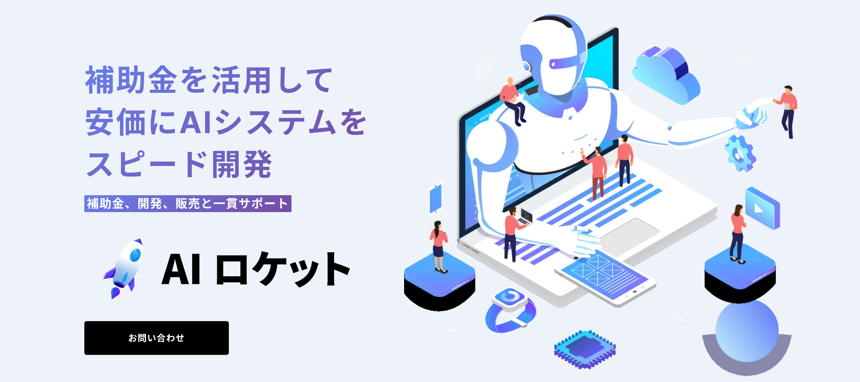 補助金申請、AIシステム開発、システム販売までAI開発の専門家・マーケティングのプロがサポート。誰でも簡単にAI事業に参入できる革新的サービス。
