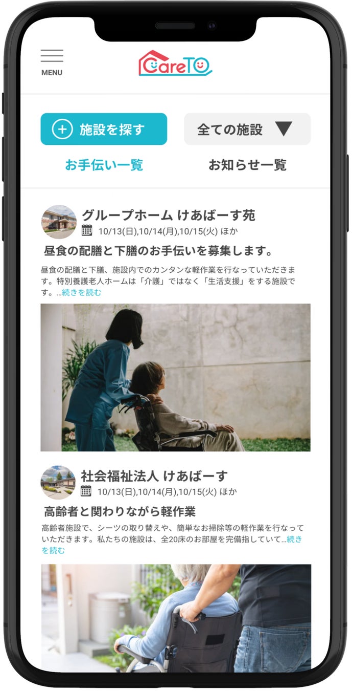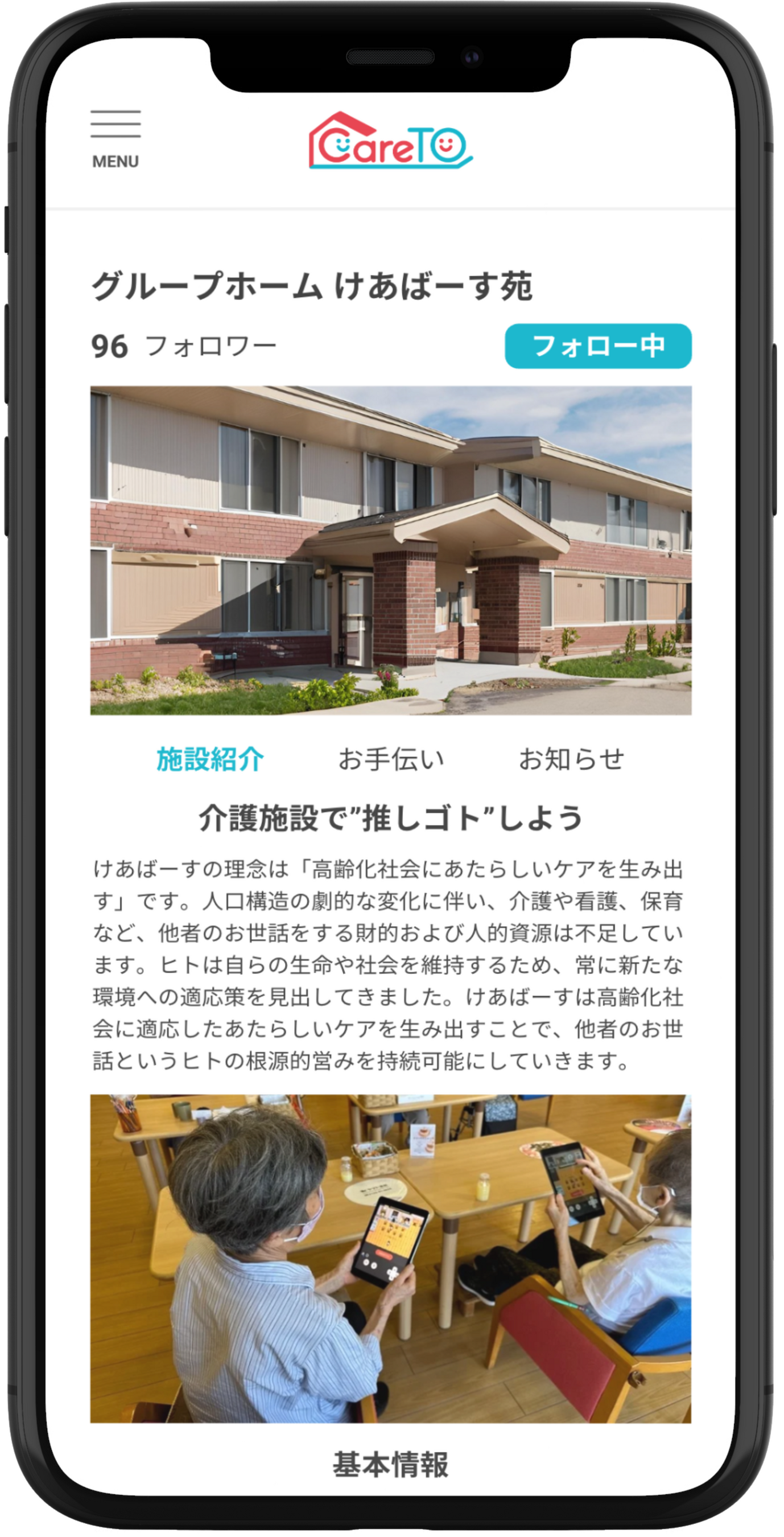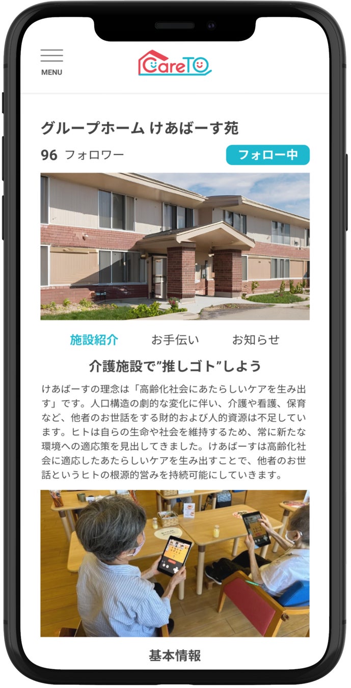 福祉施設の”推しゴト”アプリ「CareTO」に関して