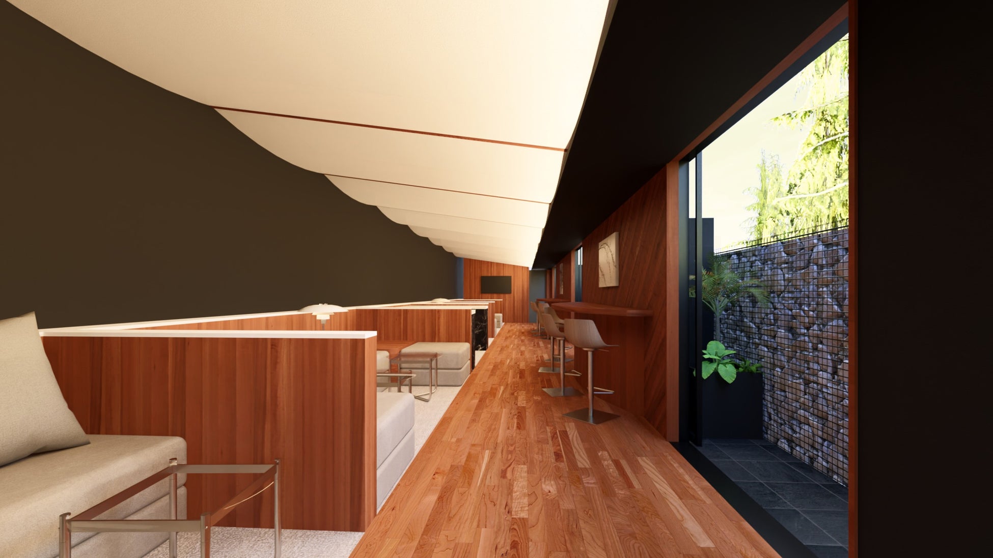 前回までに行った工事で、全客室に客室専用ジェットバス付き露天風呂(半露天風呂)とロウリュ式プライベートサウナルームを設け、人目を気にせず滞在中は何度でも露天風呂(半露天風呂)とサウナが楽しめる仕様となっており、今回はご宿泊ゲストが客室以外でリラックスできる特別な空間としてご宿泊者様専用のゲストラウンジ「THE SHIP」を新設することにより