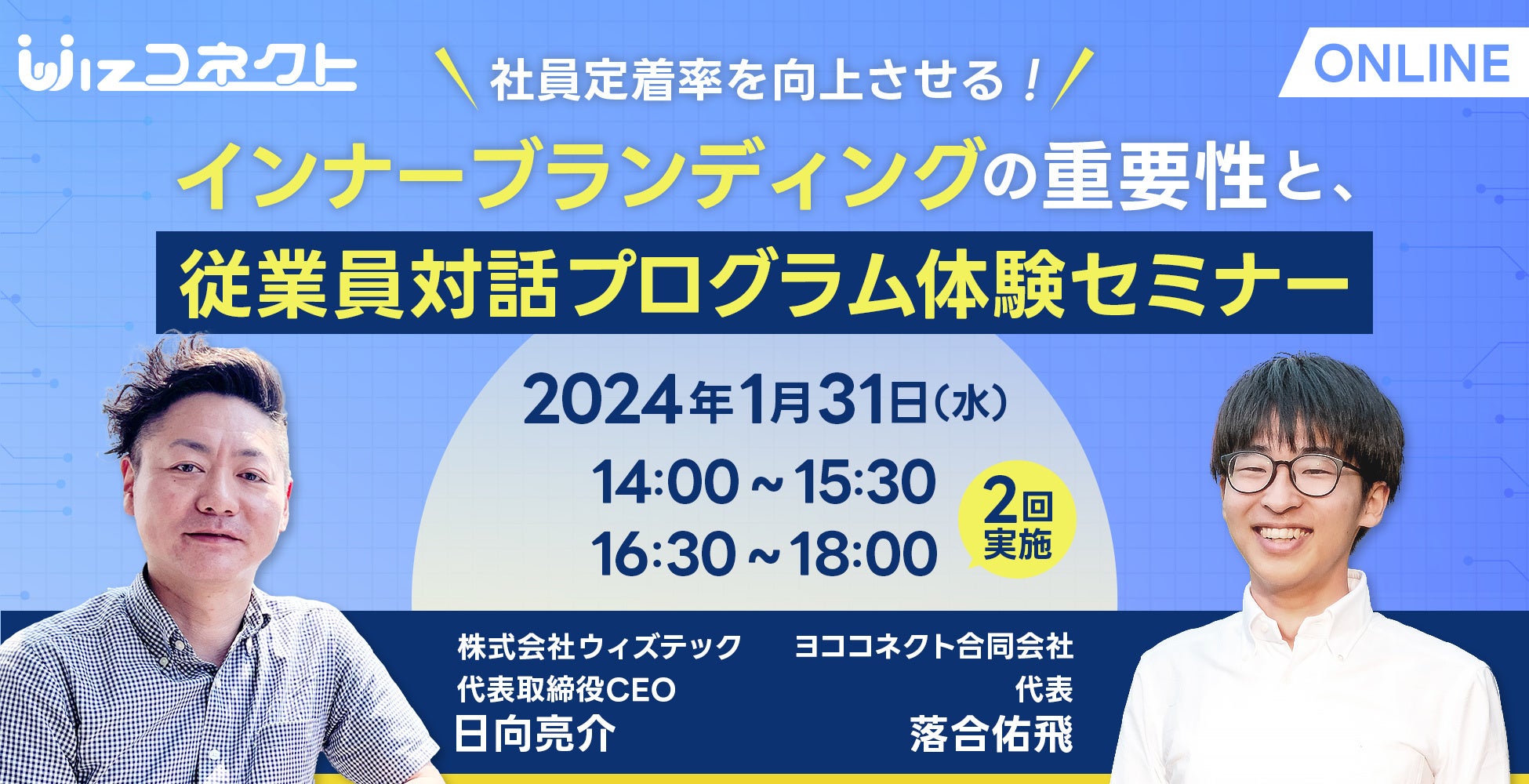 【1/31(水) 無料ウェビナー】社員定着率を向上させる!インナーブランディングの重要性と、従業員対話プログラム体験セミナー開催