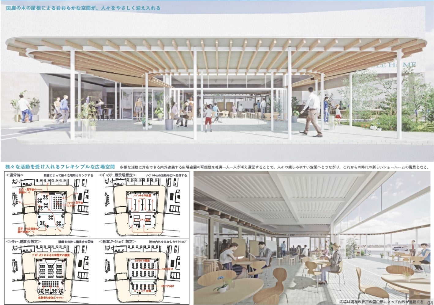 ショールームというと、いわゆる「箱」を考えてしまいがちですが、この提案は中と外を繋ぐという考えが素晴らしいと感じました。