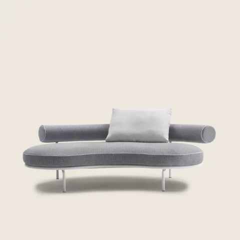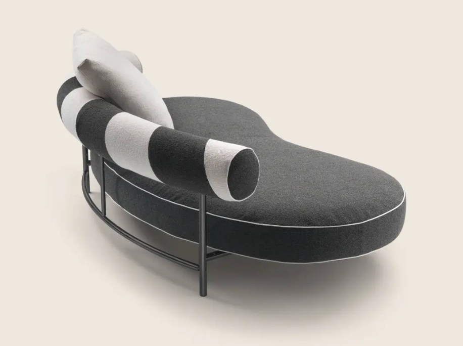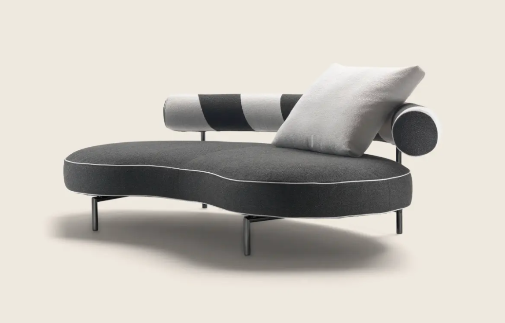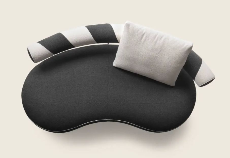 羽毛たっぷりのシートにゆったりとしたプロポーションは、リラックスした姿勢を促す。そして、特徴的なビーンズ型のシートとバイカラーの筒状の背もたれは、目を引くデザインとなっている。