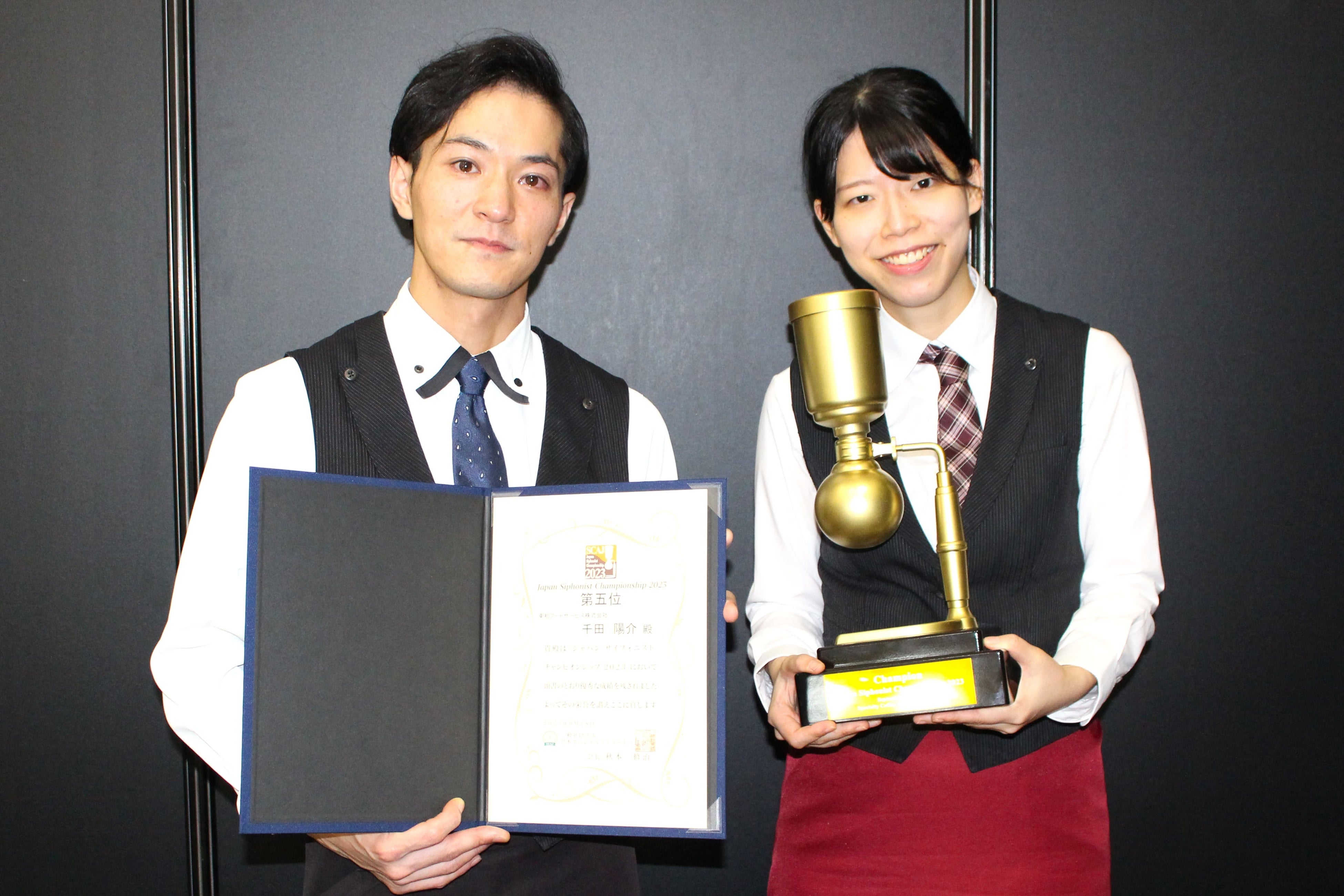 結果、サイフォニストとしての抽出技術、ブレンドの味わい、想像力を掻き立てるプレゼンテーションの独創性を評価された塚本サイフォニストが見事優勝!千田サイフォニストも5位に輝きました。