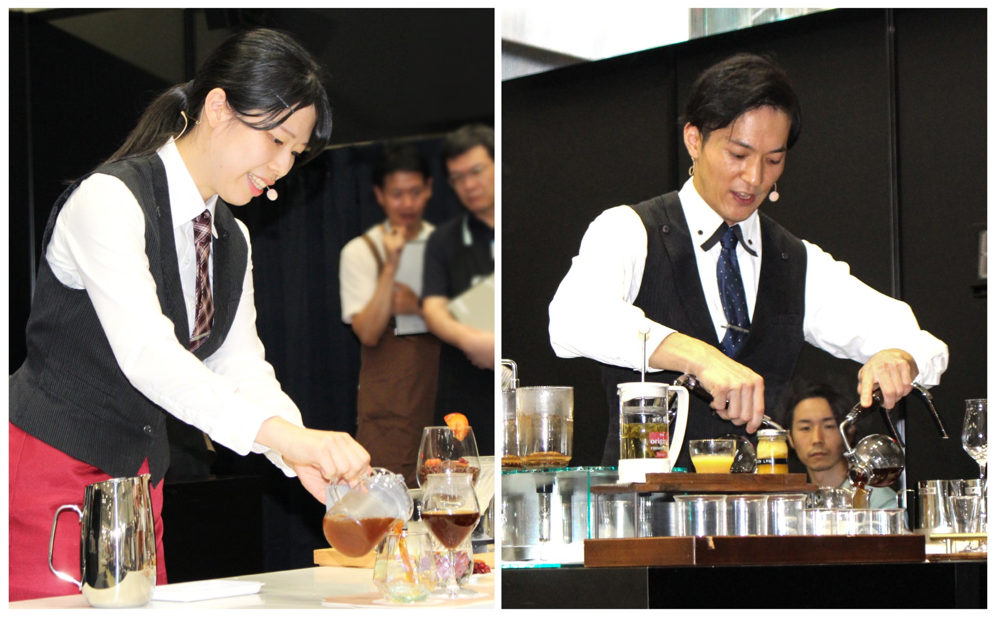 今年の「ジャパン サイフォニスト チャンピオンシップ」には、全国から予選を勝ち抜いてきた6名が参加。15分間の競技時間内に抽出した「ブレンドコーヒー」と、「アレンジドリンク(シグネチャービバレッジ)」を3杯ずつ提供して競いました。