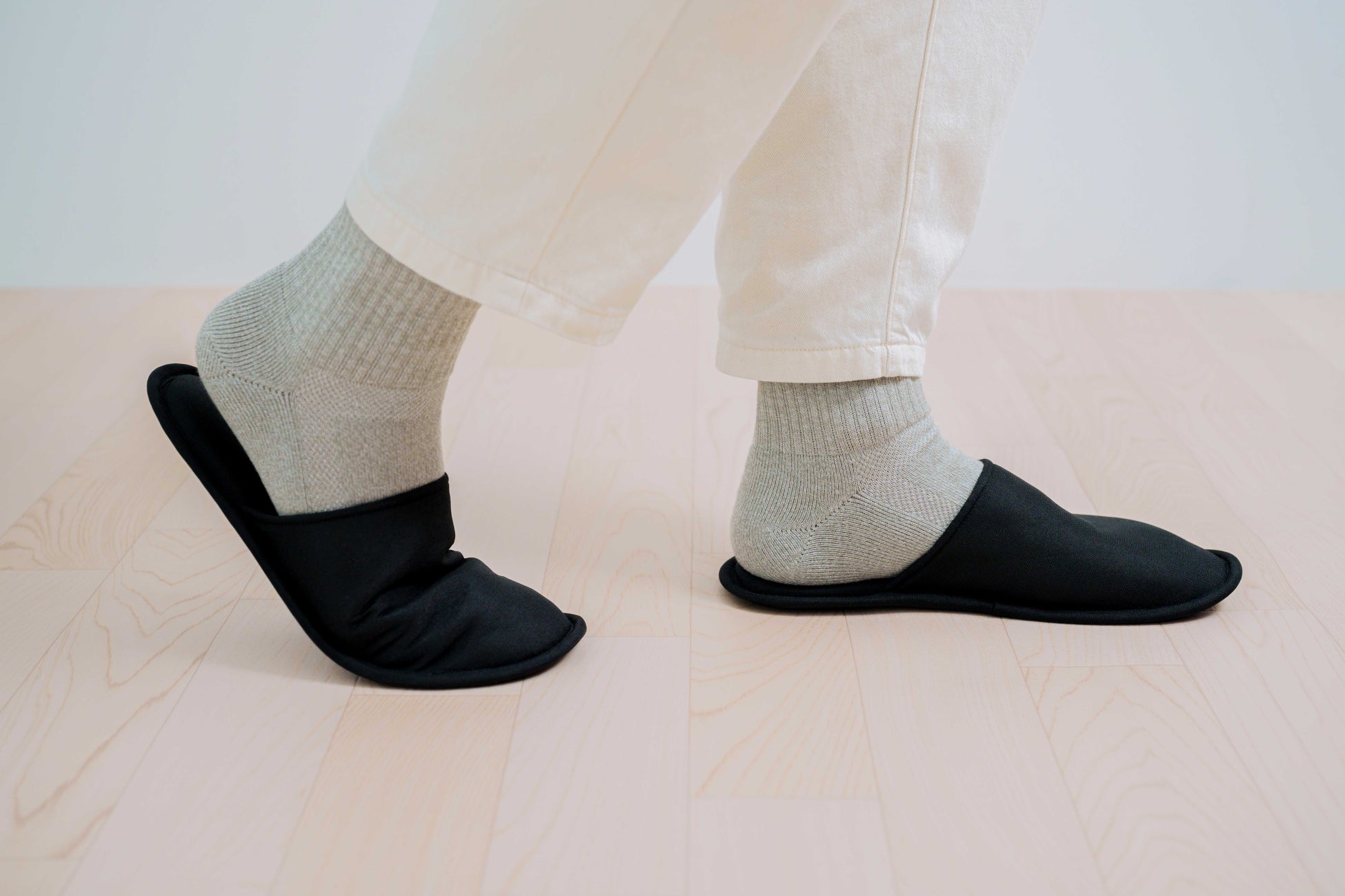 サイズはあえてフリーサイズにすることで、1足で約23~27cmサイズの方が着用でき、家の中の収納スペースのかさ張りを効率よく減らすことが期待できます。