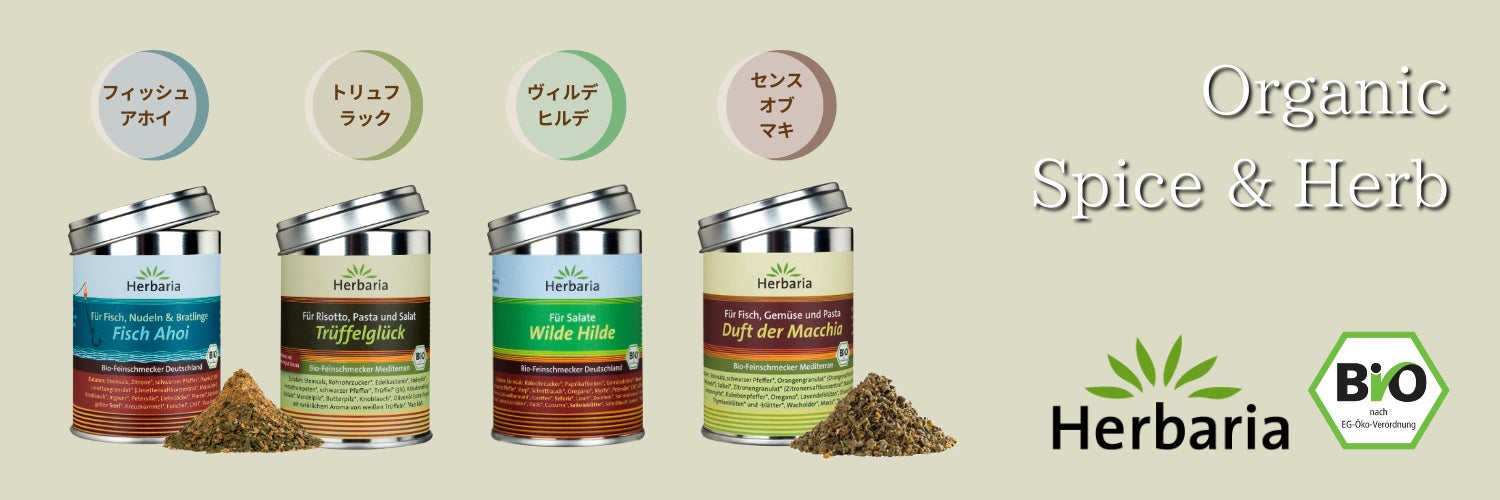 ハーバリアジャパンは、ドイツHerbaria社と日本で初めて販売独占契約を結び、ドイツ・Herbaria社のスパイスとハーブを取り扱うことを目的として立ち上げられました。今から100年前にメディカルハーブの製造会社として創業したHerbariaは、オーガニックハーブを世に広めるパイオニアとして、安心・安全で、環境に優しい商品づくりを続けている企業です。ハーバリアが願う『食を通じ、人と自然との調和を大切にする』という想いを受け継ぎ、ハーバリアこだわりのスパイス&ハーブを日本の皆様にお届けいたします。