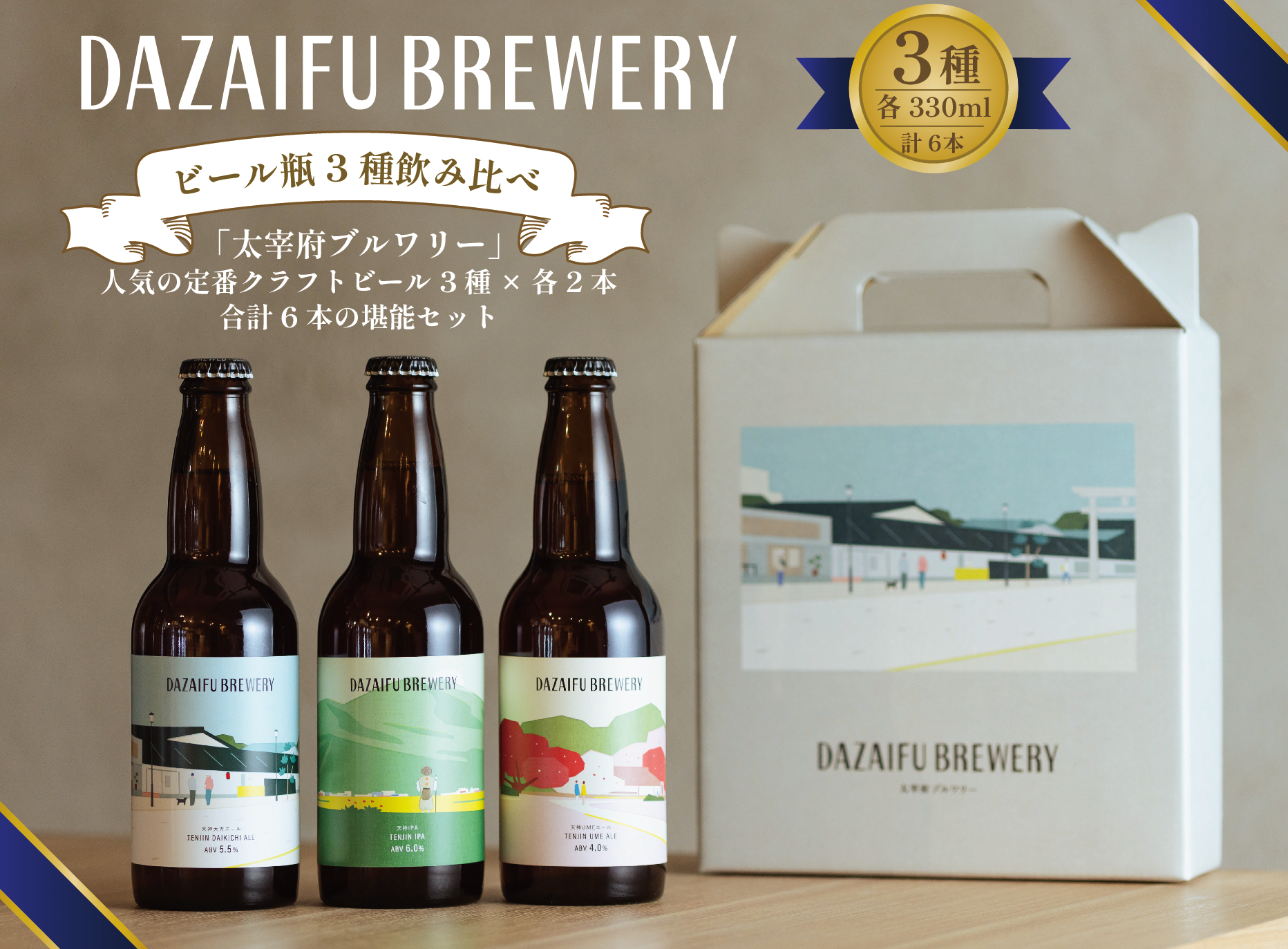 海外からも数多くの観光客が訪れる太宰府天満宮の参道沿いにある「太宰府ブルワリー」でお土産としても人気のクラフトビール定番3種の各2本合計6本セットになります。プレゼントにも最適です!