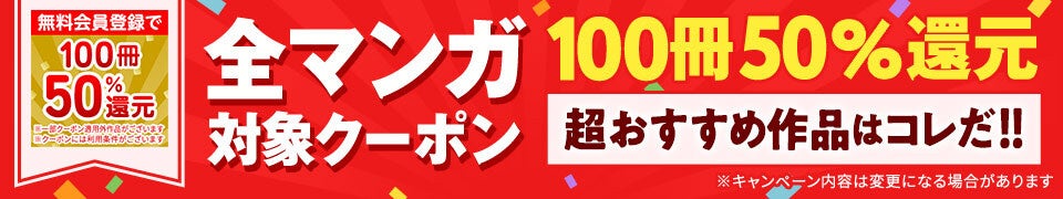 ・さらに、新規会員登録(無料)ならお好きなマンガどれでも100冊まで50%還元!