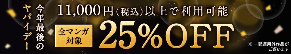 「今年最後のヤバイデー」として、全マンガ対象の「100冊まで25%OFFクーポン」を先着1万名様限定でプレゼントいたします。特に、まとめ買いをご検討されている方には大変お得なイベントとなりますので、読みたかった作品を購入したり、年末年始の楽しみに買いだめするなど、この機会にぜひお楽しみください。