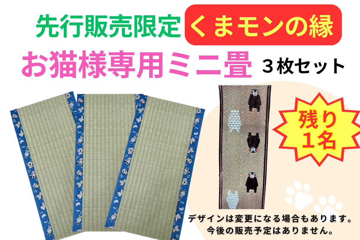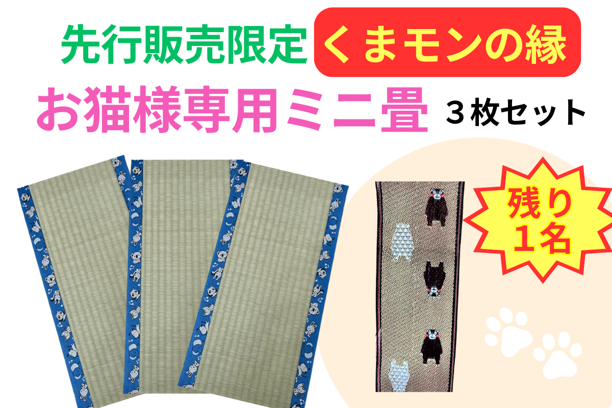 ①お猫様専用ミニ畳(くまモン)3枚&通販サイトで使える3,000円クーポン