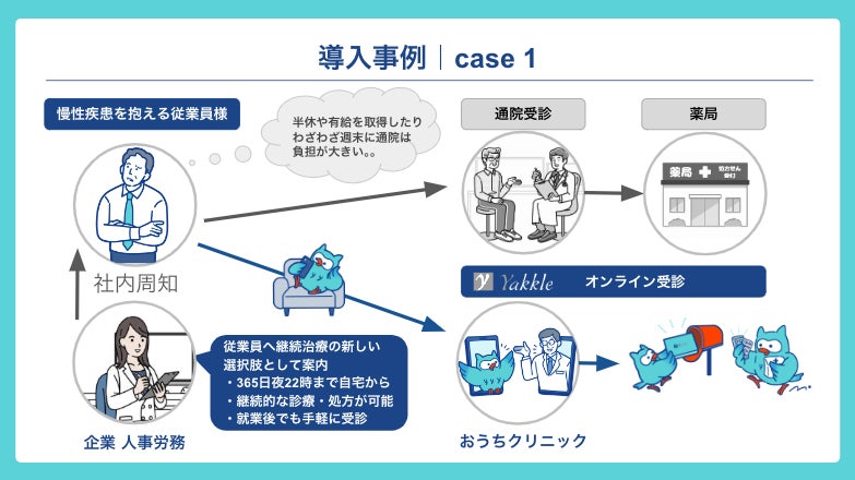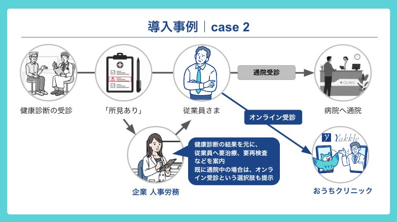 定期通院が必要な生活習慣病の従業員負担軽減、ならびに健康診断後の受診率改善までをサポート