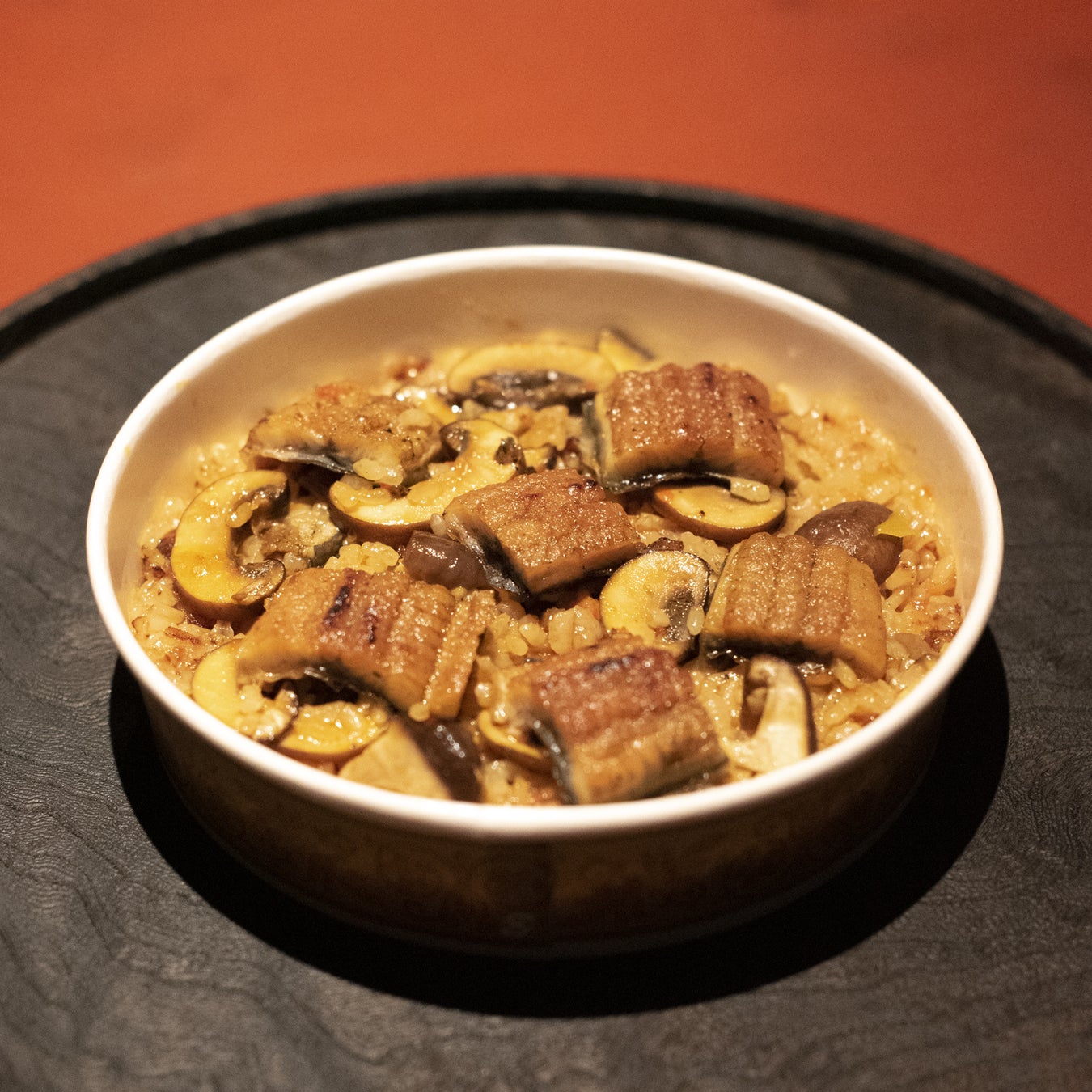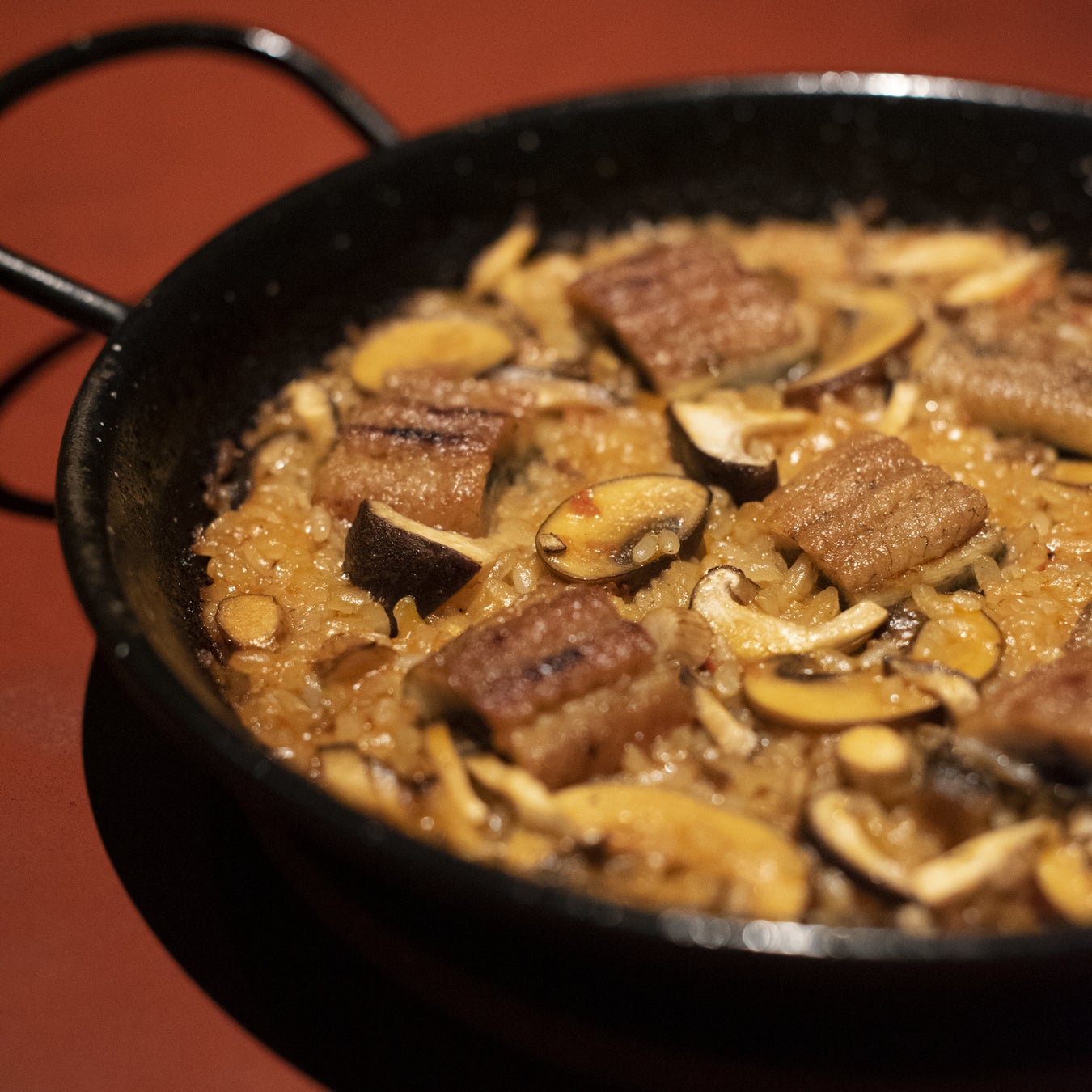 蒲焼にした国産鰻と沢山のきのこから溢れる旨みをぎゅっととじこめた自慢のパエリア。