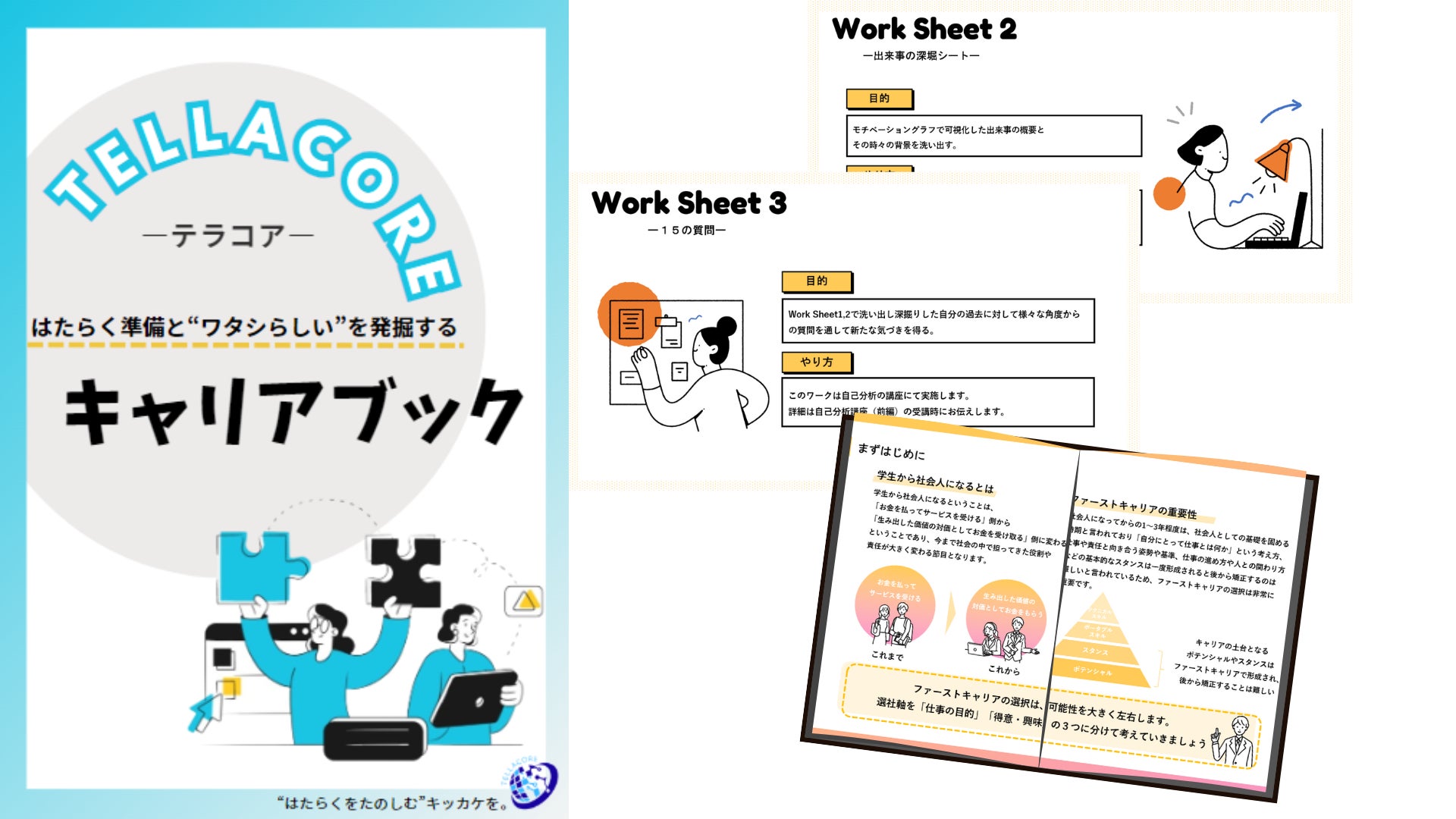 自分らしくはたらくうえで、自己理解を深めることが重要だと考えています。学生一人ひとりが"わたしらしさ”を見つけるため、当社独自コンテンツの「キャリアブック」を製作。学生が自身とはたらくことへの理解を深めることができます。