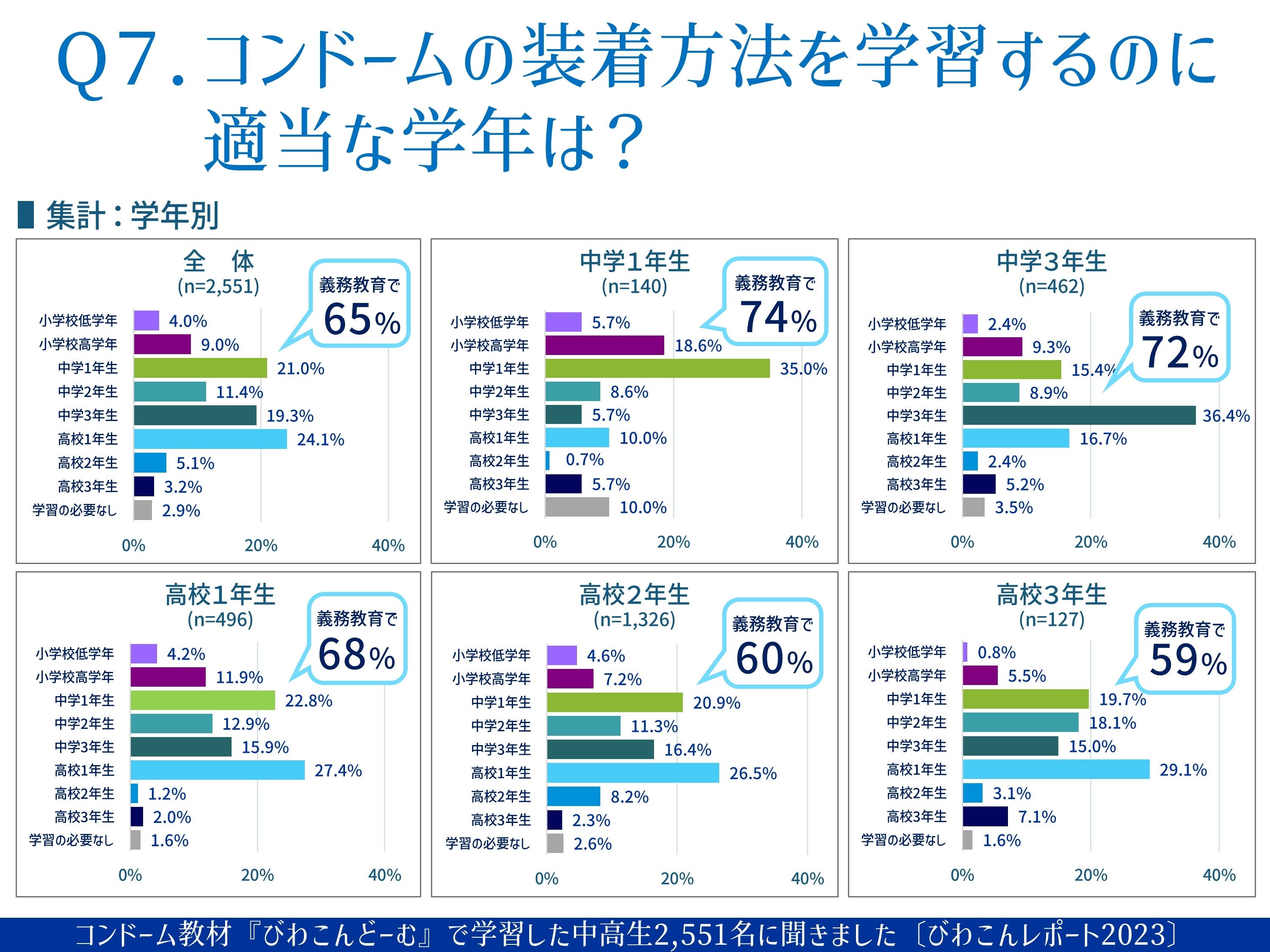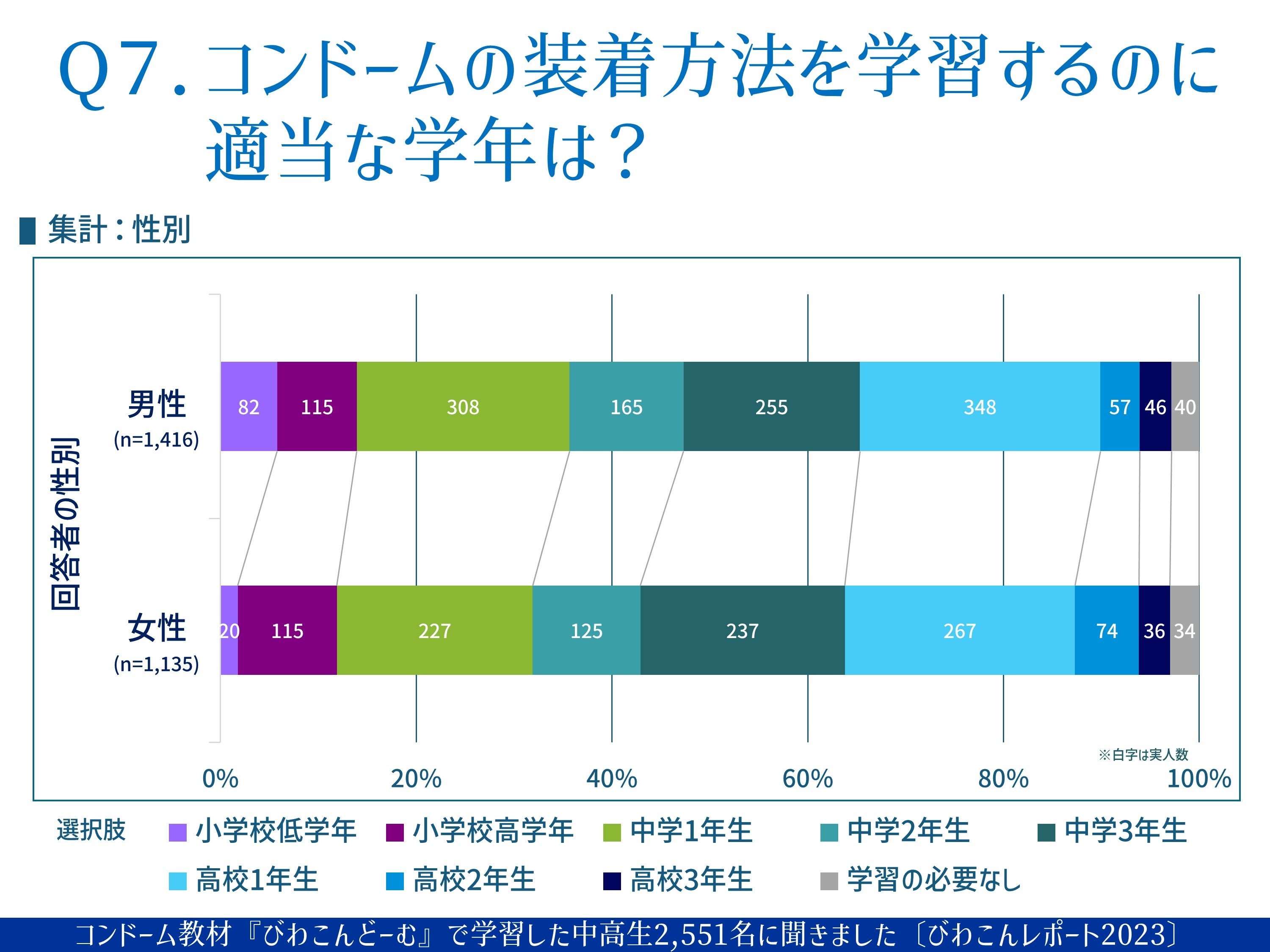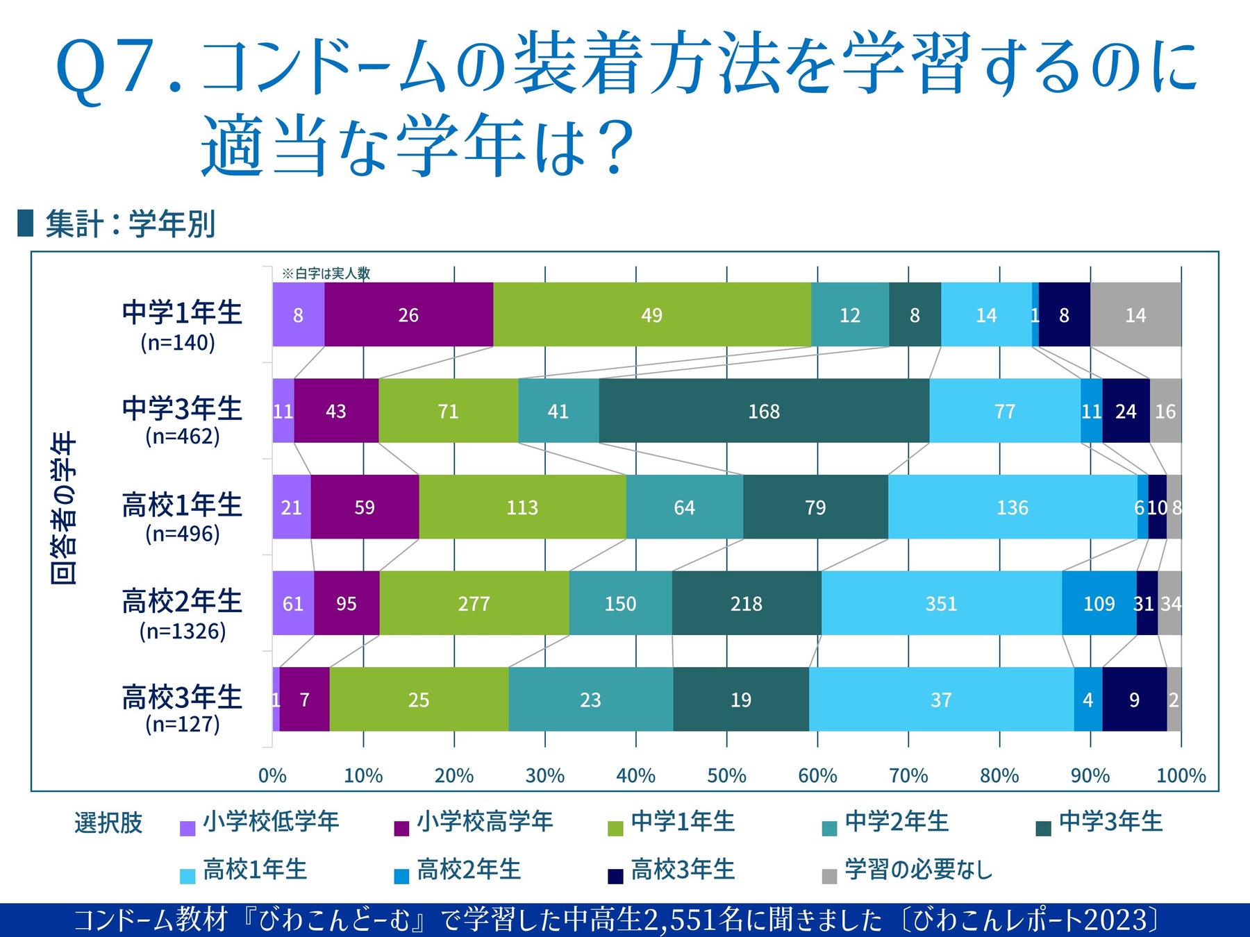 Q7:コンドームの装着方法を学習するのに適当な学年はいつだと思いますか?