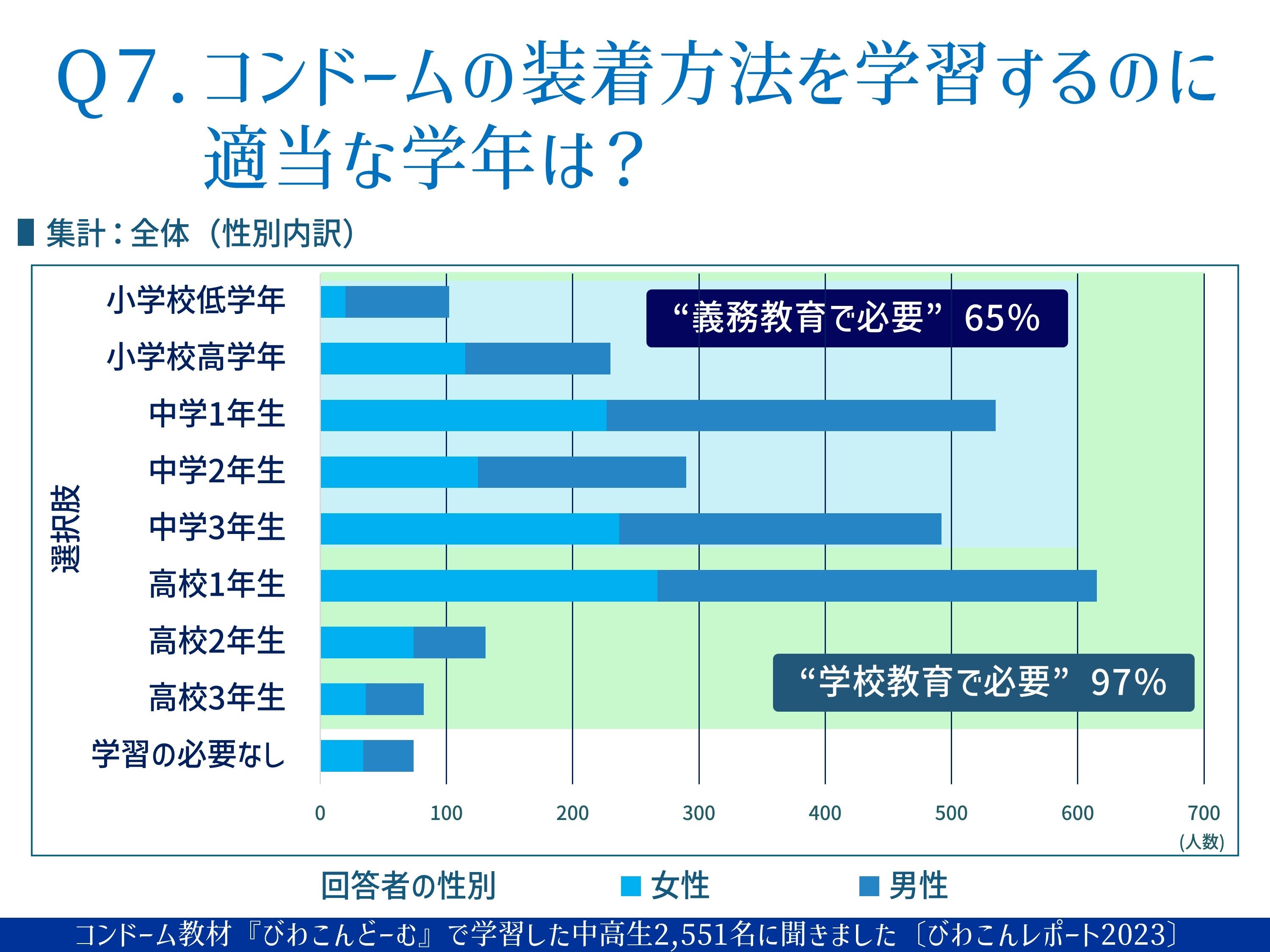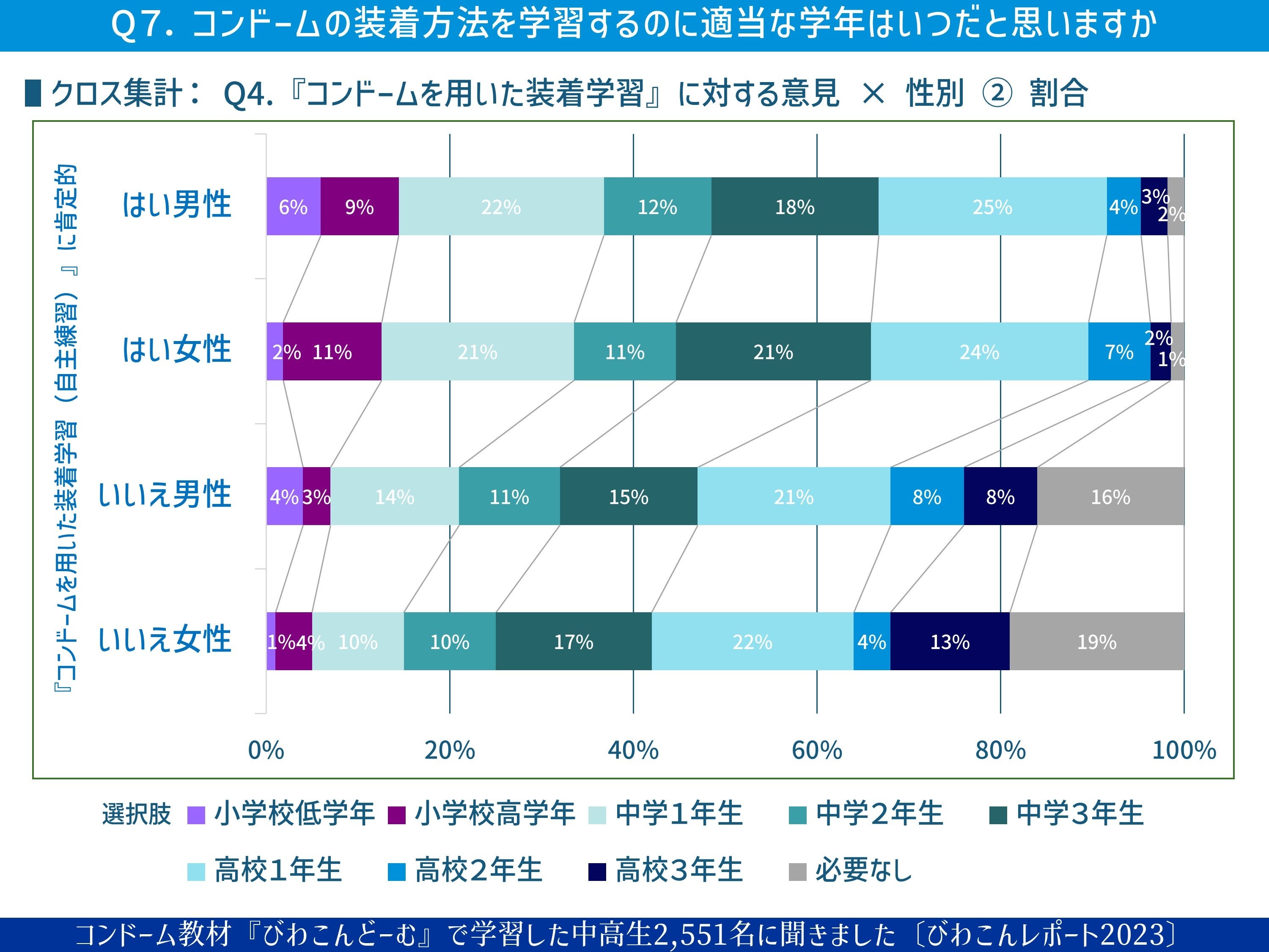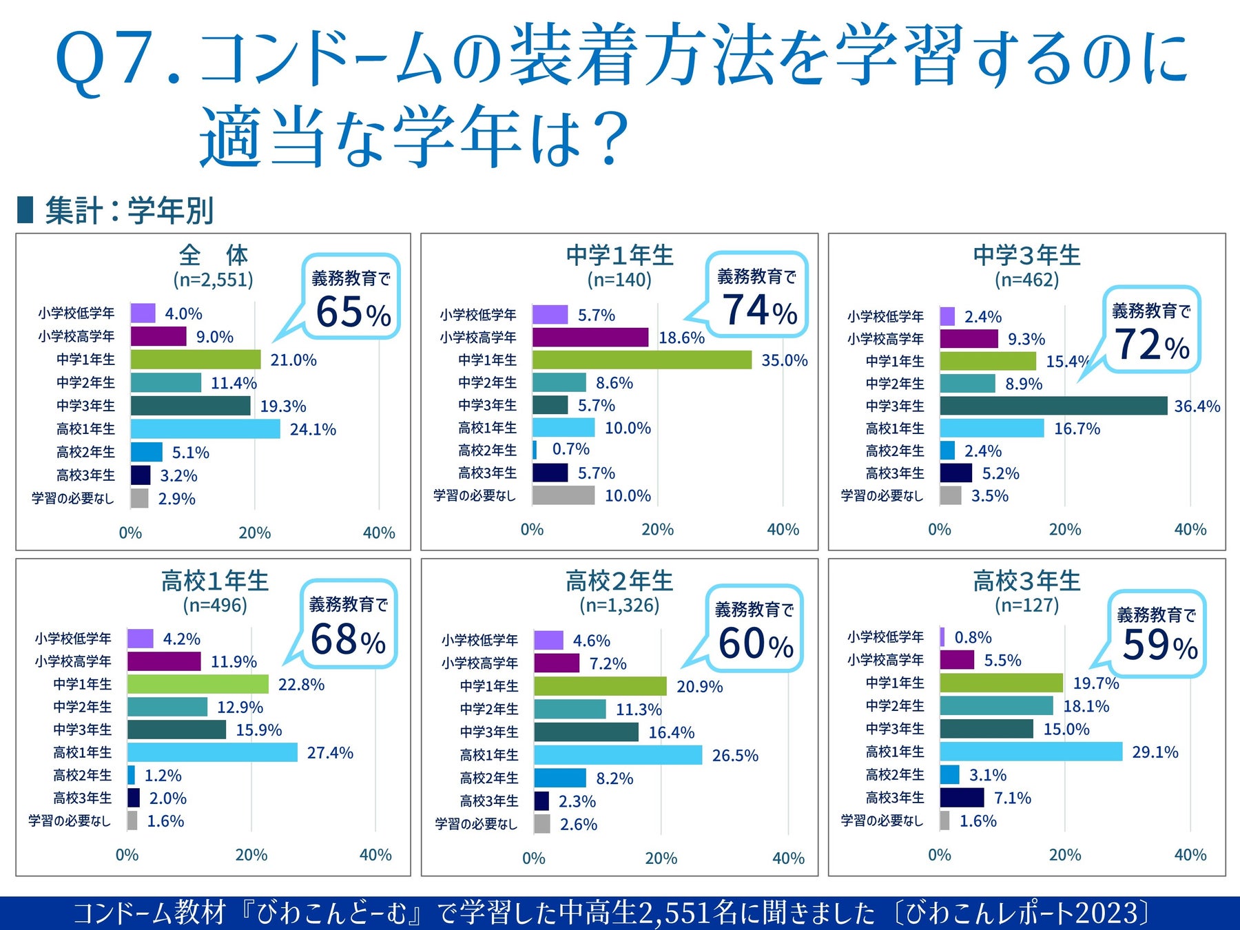 Q7:コンドームの装着方法を学習するのに適当な学年はいつだと思いますか?