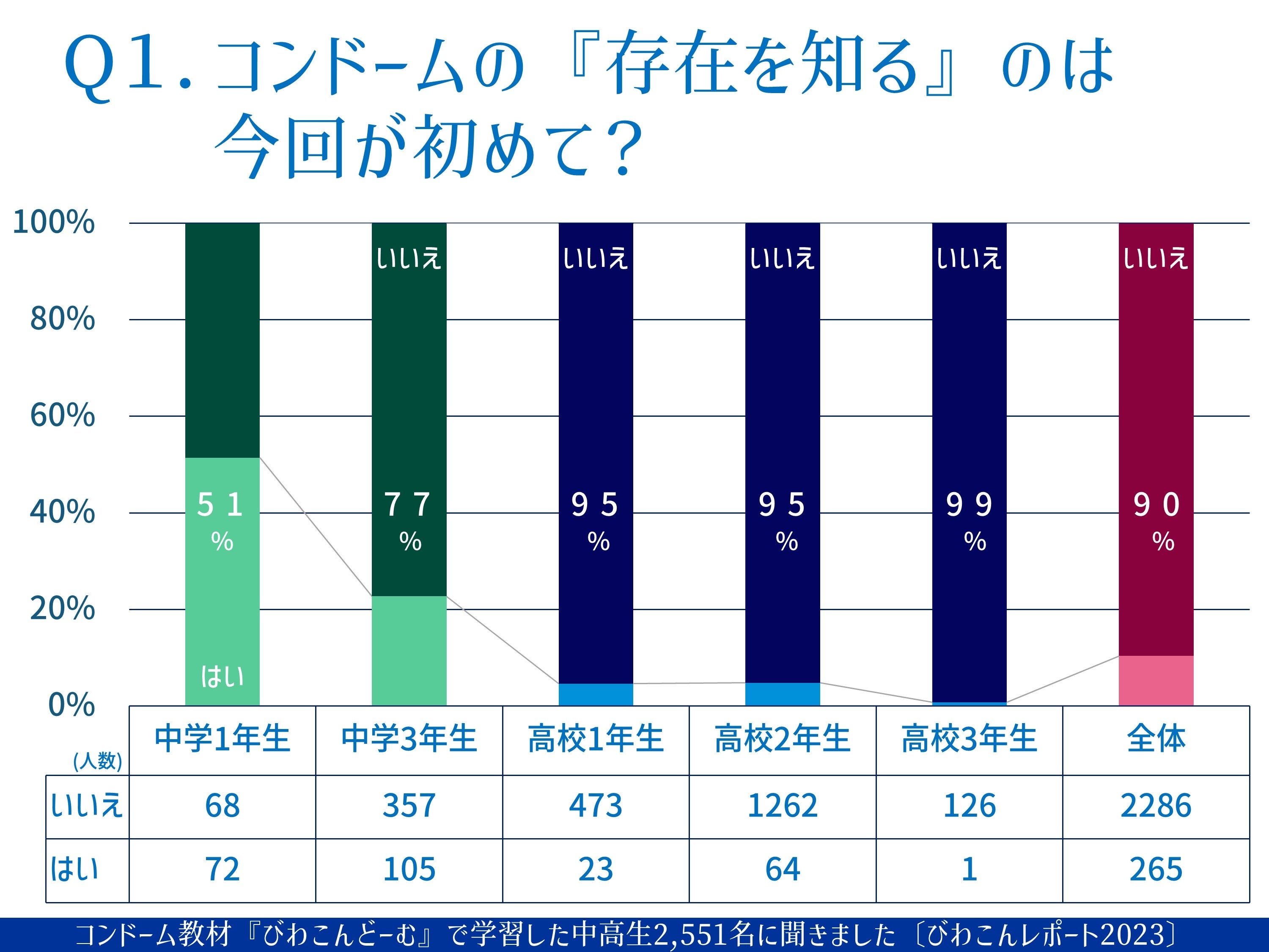 ・中学1年生の約半分(51%)がコンドームの存在をまだ知らないと回答