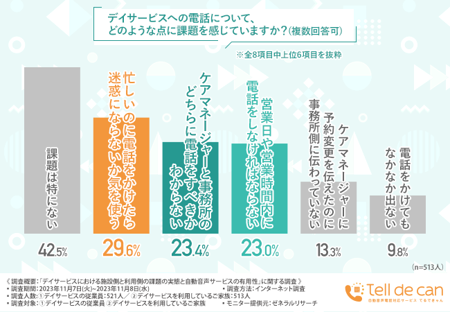 また、デイサービスを利用する家族側にも、デイサービスへの電話に課題を持っている方が少なくないこともわかっています。