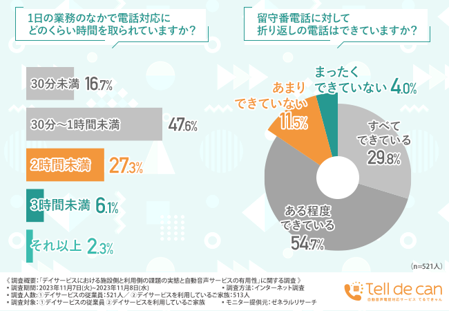 今回の調査で、デイサービスの従業員の多くが電話対応に課題を感じていることが明らかになりました。
