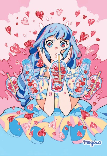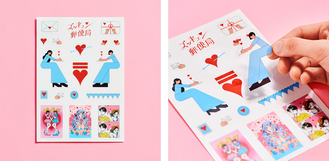 Z世代から絶大な支持を得ているイラストレーターが「ズッキュン」をテーマに描きおろしたイラストをポストカードとして販売。ポストカードは各種300円(税込)。