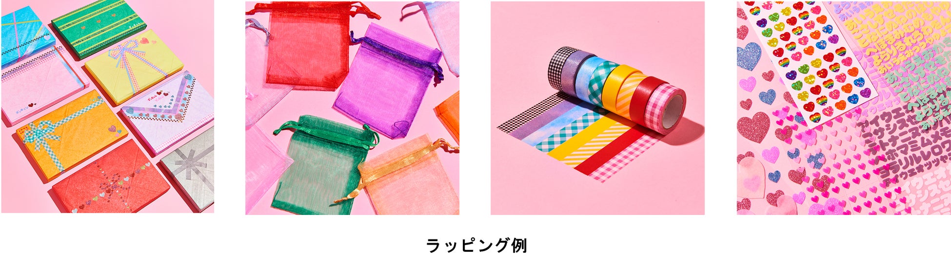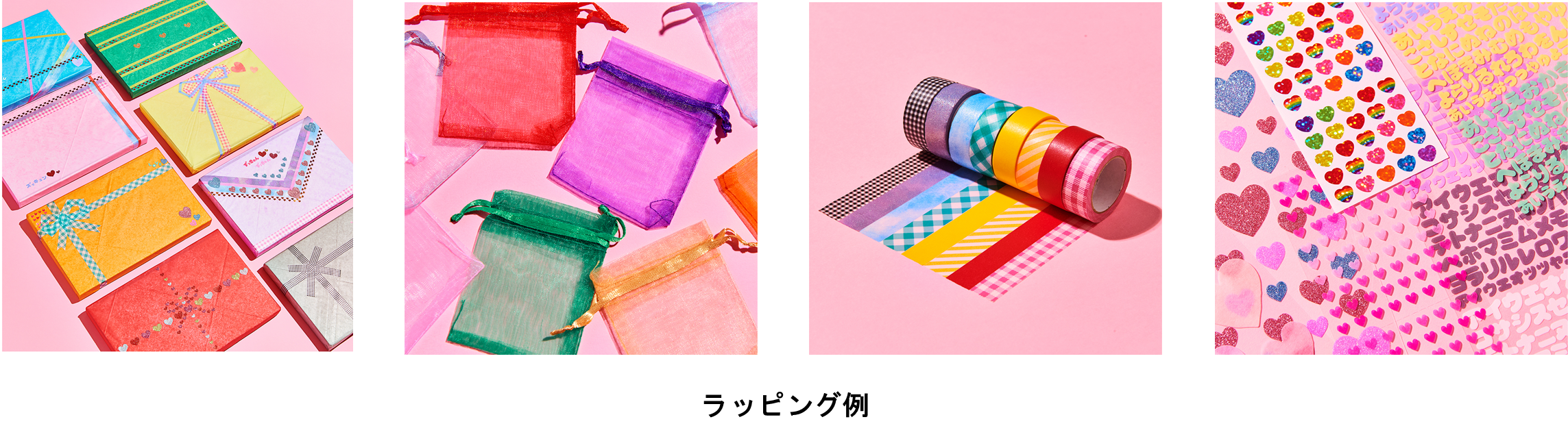 自由に使える、色とりどりのラッピングアイテムをご用意。推しのメンバーカラーで彩った贈り物や、ファン同士でのグッズ交換にも最適です。