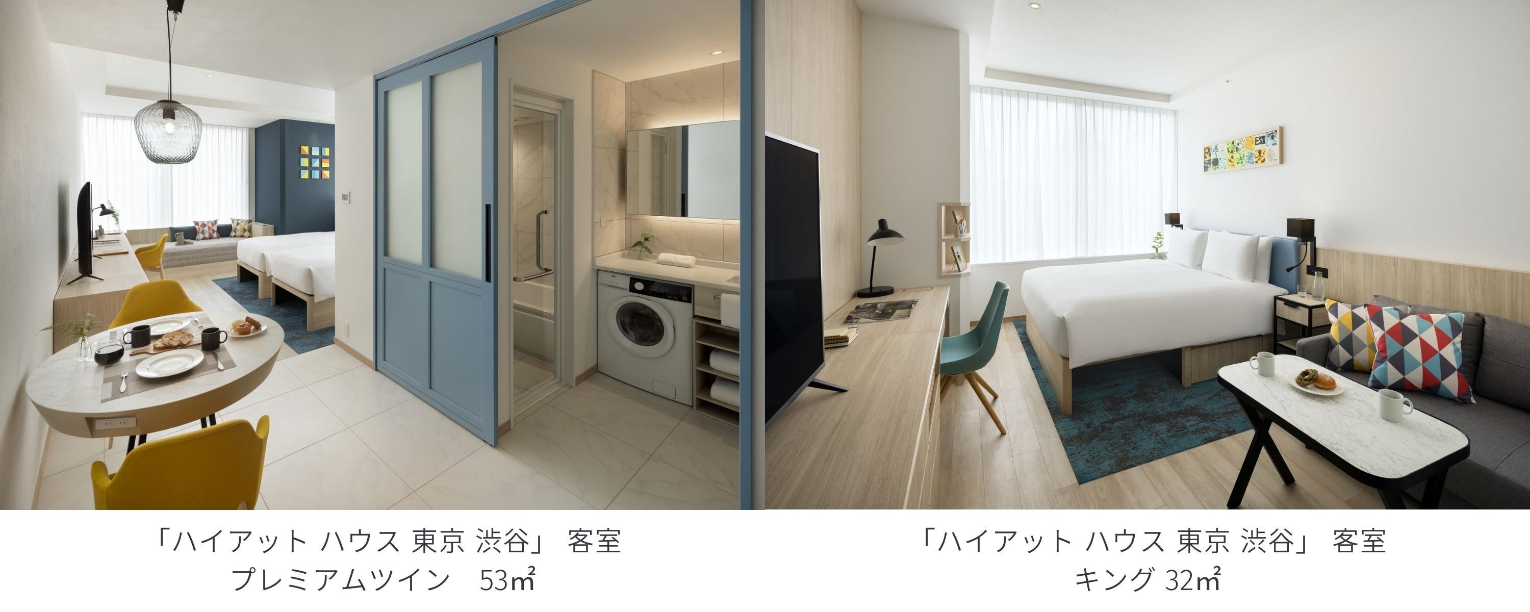 JR/私鉄各線が数多く乗り入れる巨大ターミナル渋谷駅から歩行者デッキでつながるハイアット ハウス 東京 渋谷は、スイート18室を含む126室のアパートメントタイプ。32㎡以上の広々とした快適な客室には、充実したキッチン・洗濯乾燥機・オーブンレンジ・55インチ以上のTV・冷凍冷蔵庫・バスタブを完備し、暮らすようにご滞在いただけます。館内にはさらに、インドアプール、24時間ご利用可能なフィットネスジム、会議室、必要な日用品やスナックなどを24時間販売するショップ、緑豊かなルーフトップガーデン、バー、レストランを併設。渋谷の中心でお客様のもう一つの“ハウス”を目指します。