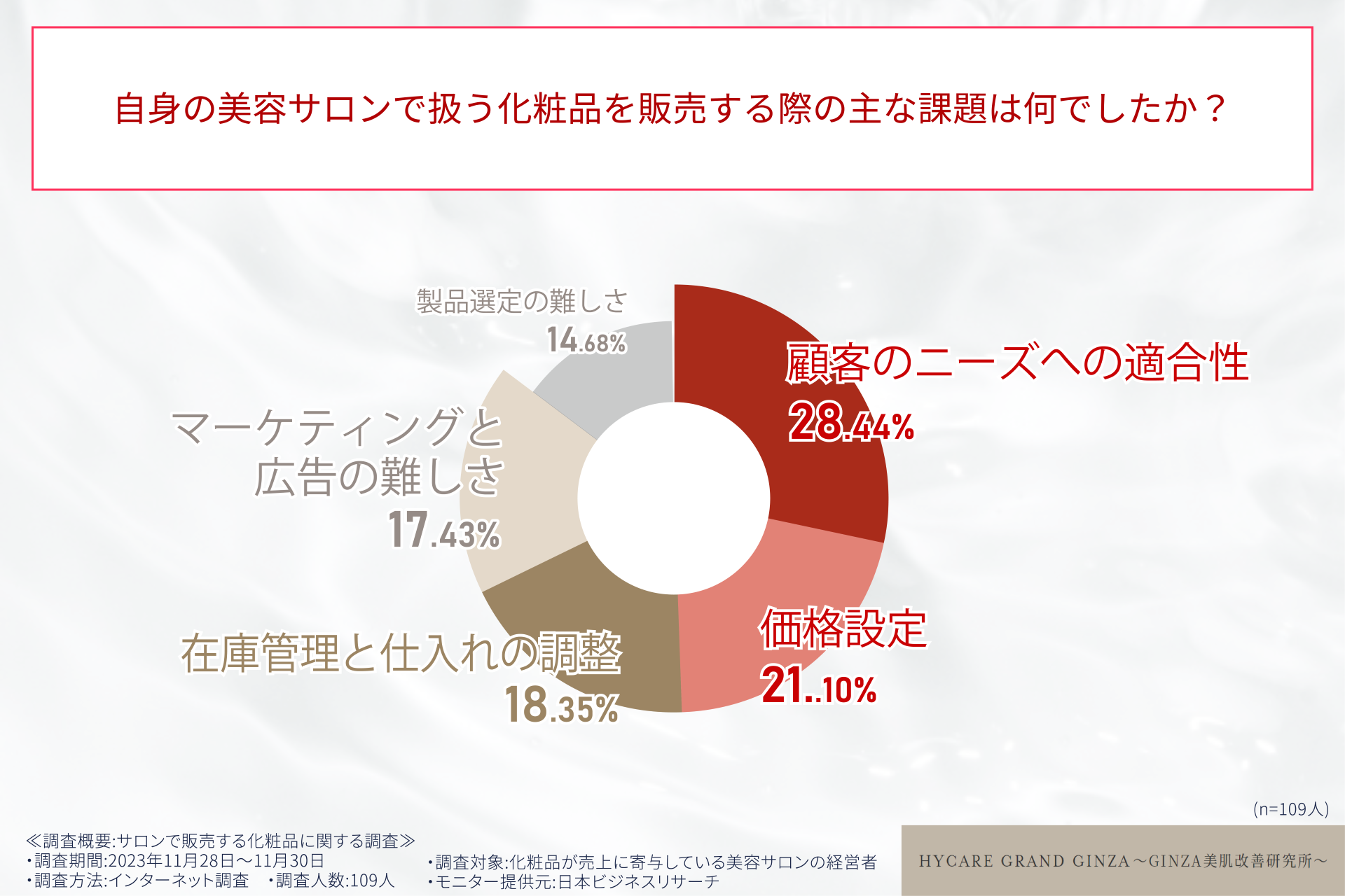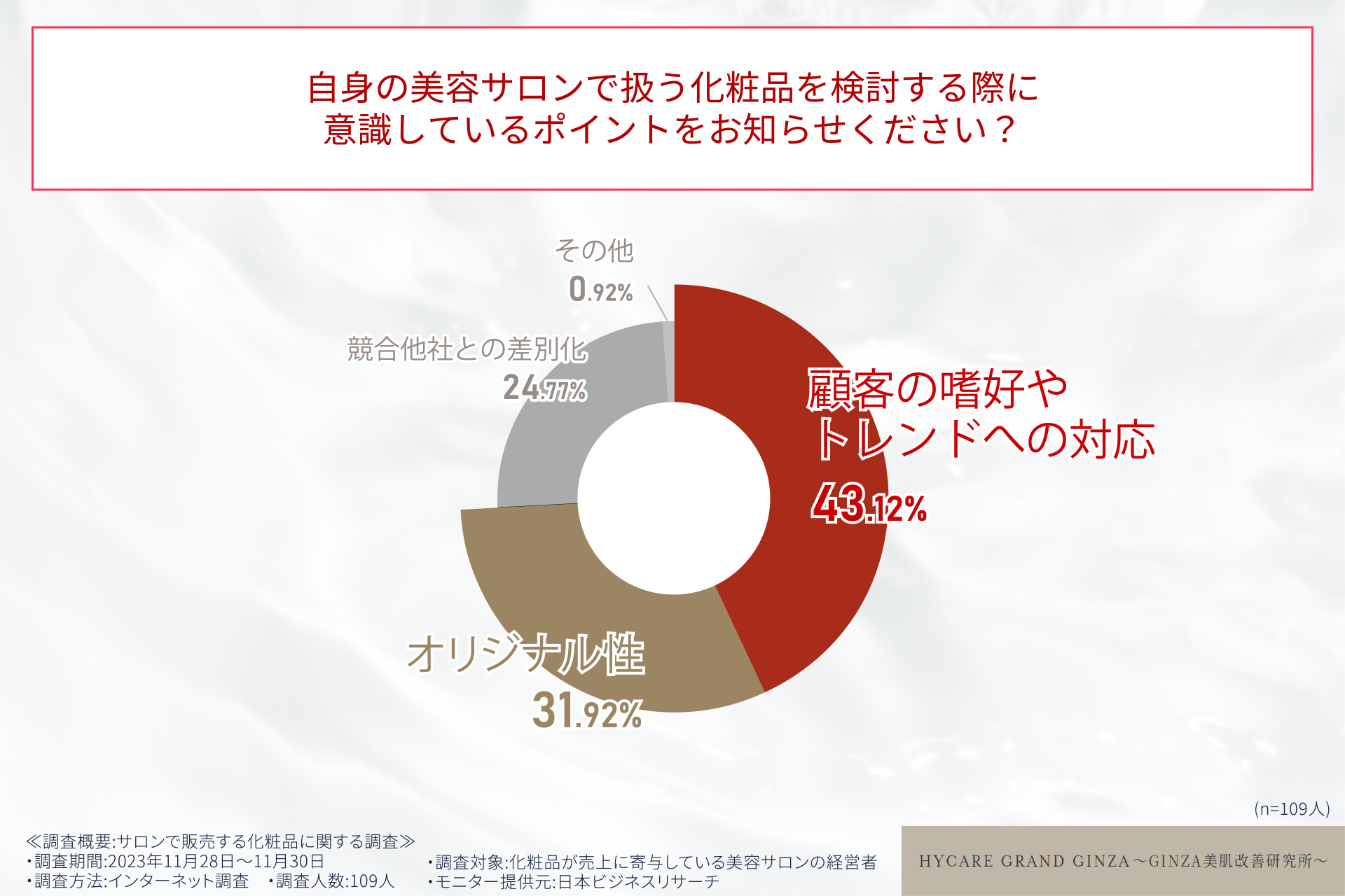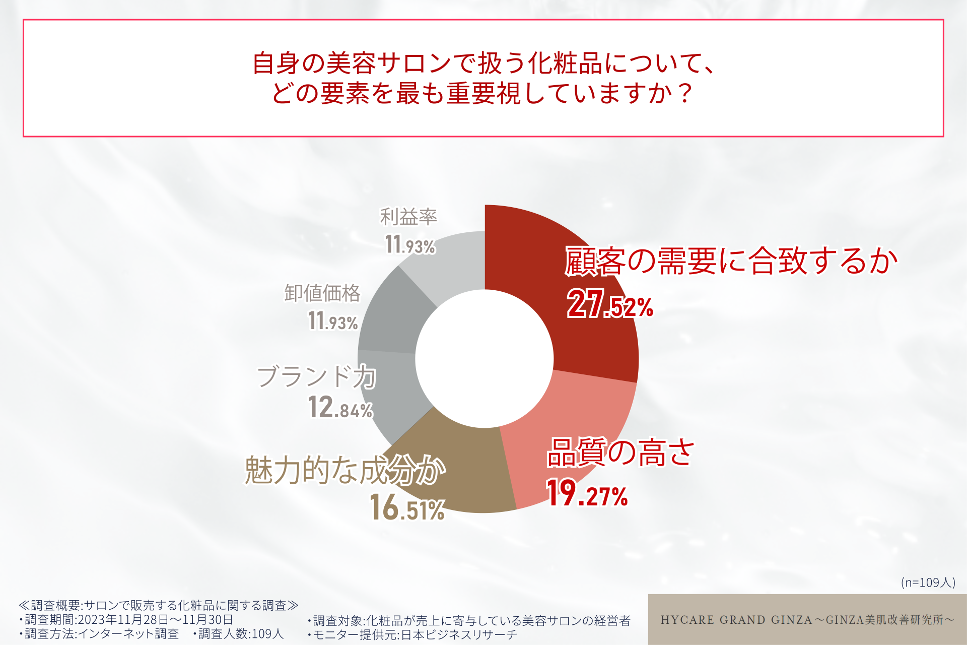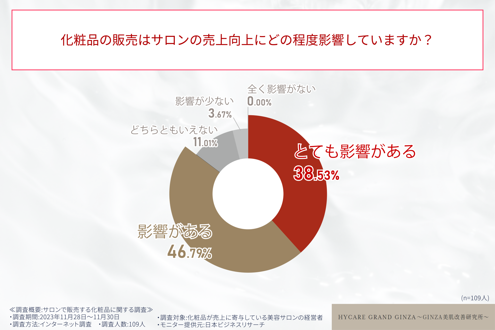 「サロン専売の化粧品を扱うサロンの○○%が化粧品によるブランドイメージの向上を実感!?」美容サロン経営者109人へ調査を実施!