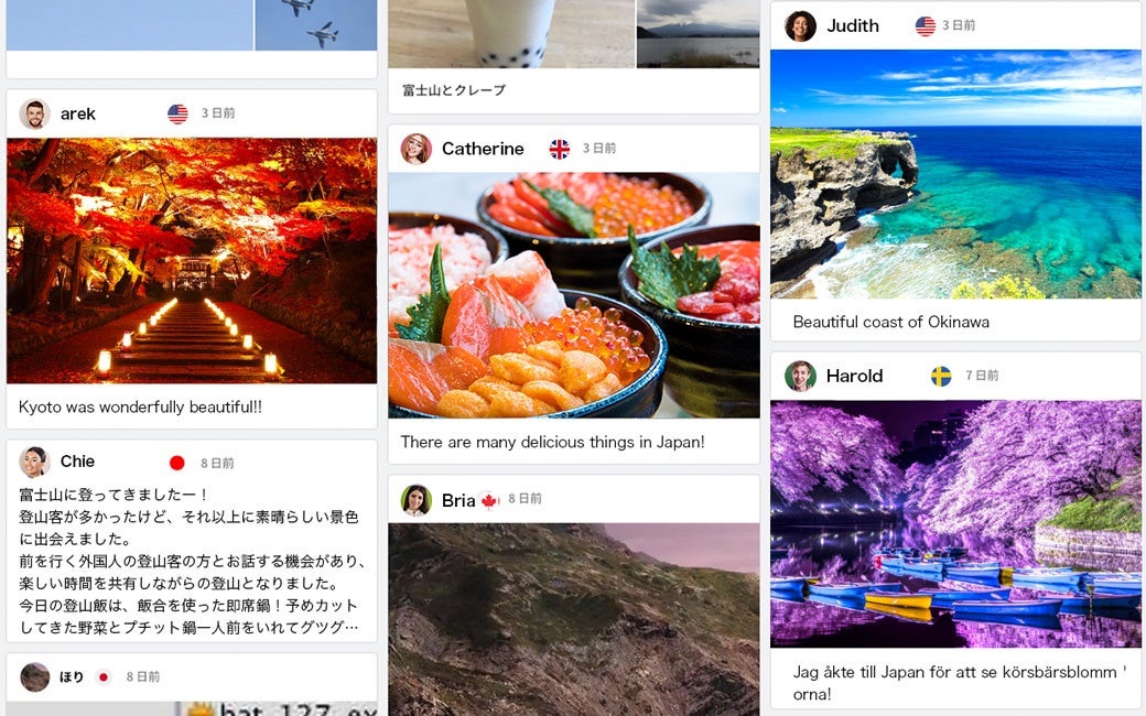 2.海外の方々が多く集まるソーシャルプラットフォームで日本の魅力を発信したい方 、海外の方とコミュニケーションを図りたい方 、趣味の合う海外の方と繋がりたい方 、日本の様々な魅力や物を海外の人にアピールしたい方 、日本独自のサービスや文化を海外に広めたい方 、各地域の魅力溢れる観光情報を発信したい方