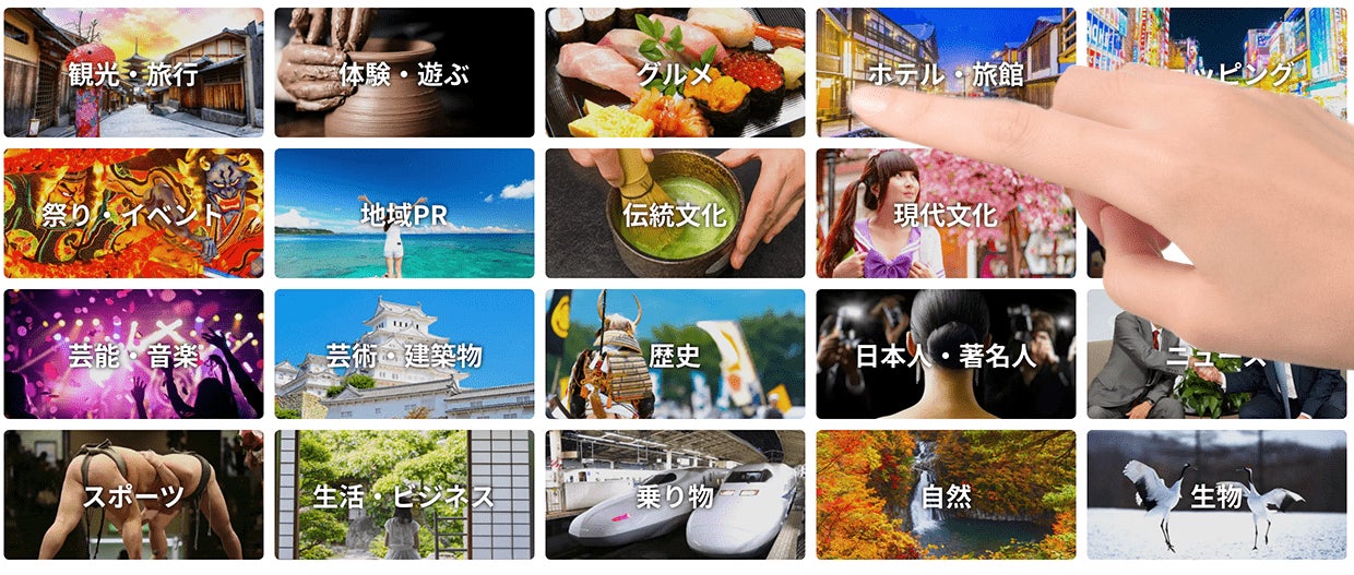 20のカテゴリで分類された動画を主軸とした記事では、日本の情報を視覚から直感的に得ることができます。